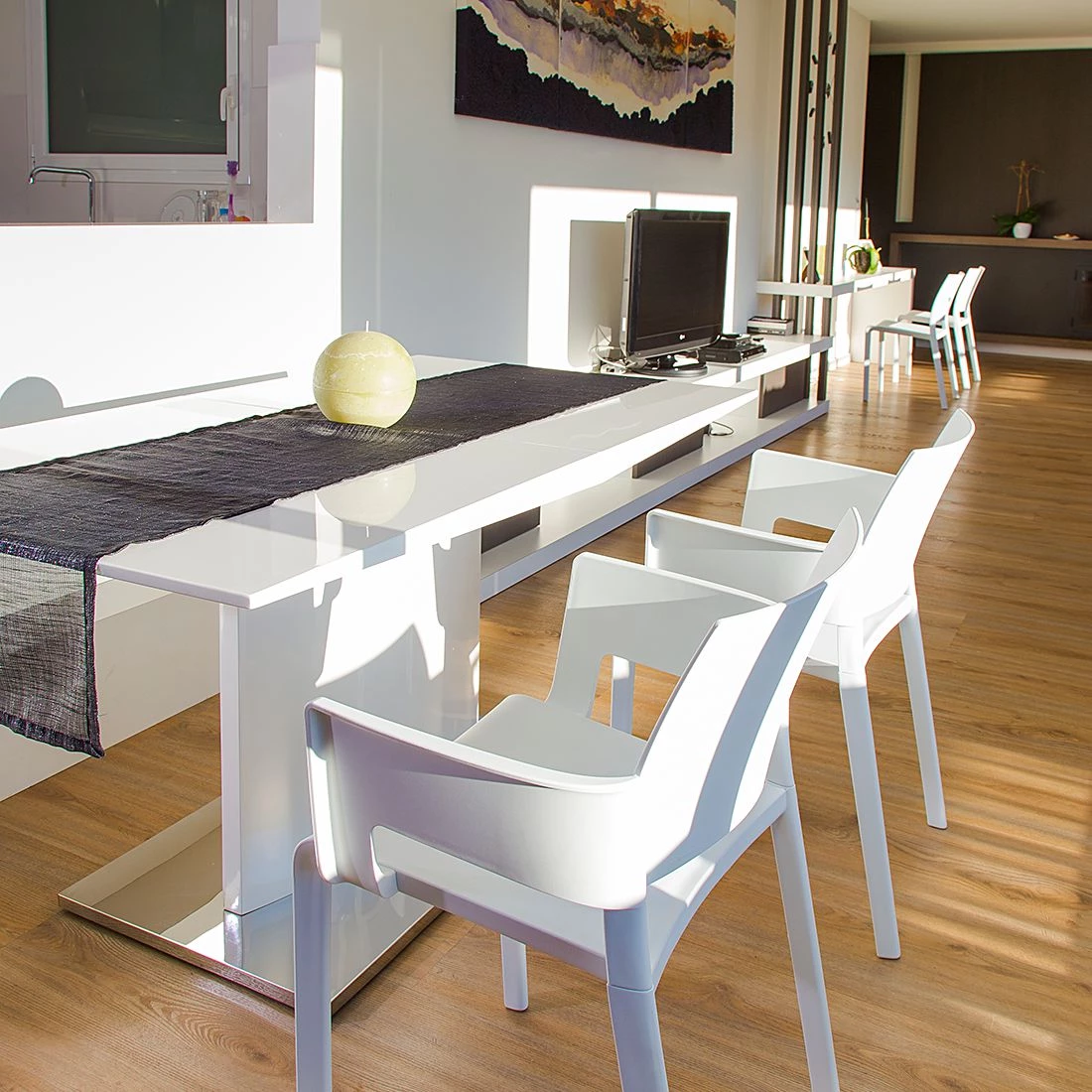 Moderne Produkte: Blanke Design bietet seit 1993 Produkte für verschiedene Wohnbereiche. Das Modell des Designers Josep Lluscà ist perfekt für alle, die ein modernes Design schätzen. Ein stützender Halt ist dank der Armlehnen des Stuhls gewährleistet. Dazu ist der Stuhl stapelbar und damit eine funktionale Lösung, wenn Sie ihn verstauen möchten.