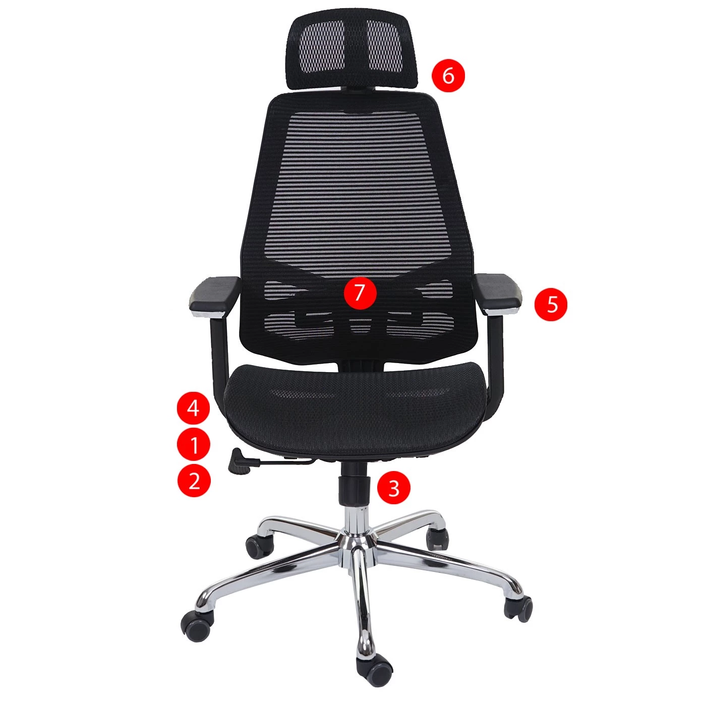 Dieser Bürostuhl in modernem und elegantem Design ist nicht nur etwas fürs Auge, sondern erfüllt höchste Ansprüche in Sachen Komfort und Stabilität. Die vielen, individuell verstellbaren Funktionen sorgen für ergonomischen Sitzkomfort: Die Kopfstütze und die Armlehnen können in der Höhe verstellt werden und die Sitzfäche lässt sich in der Tiefe verstellen, sodass Sie innerhalb kürzester Zeit Ihre perfekte Sitzposition finden und über viele Stunden hinweg entspannt arbeiten können. Abgerundet wird das Gesamtbild durch das stabile Fußkreuz, das noch etwas zusätzliche Eleganz im Erscheinungsbild schafft.