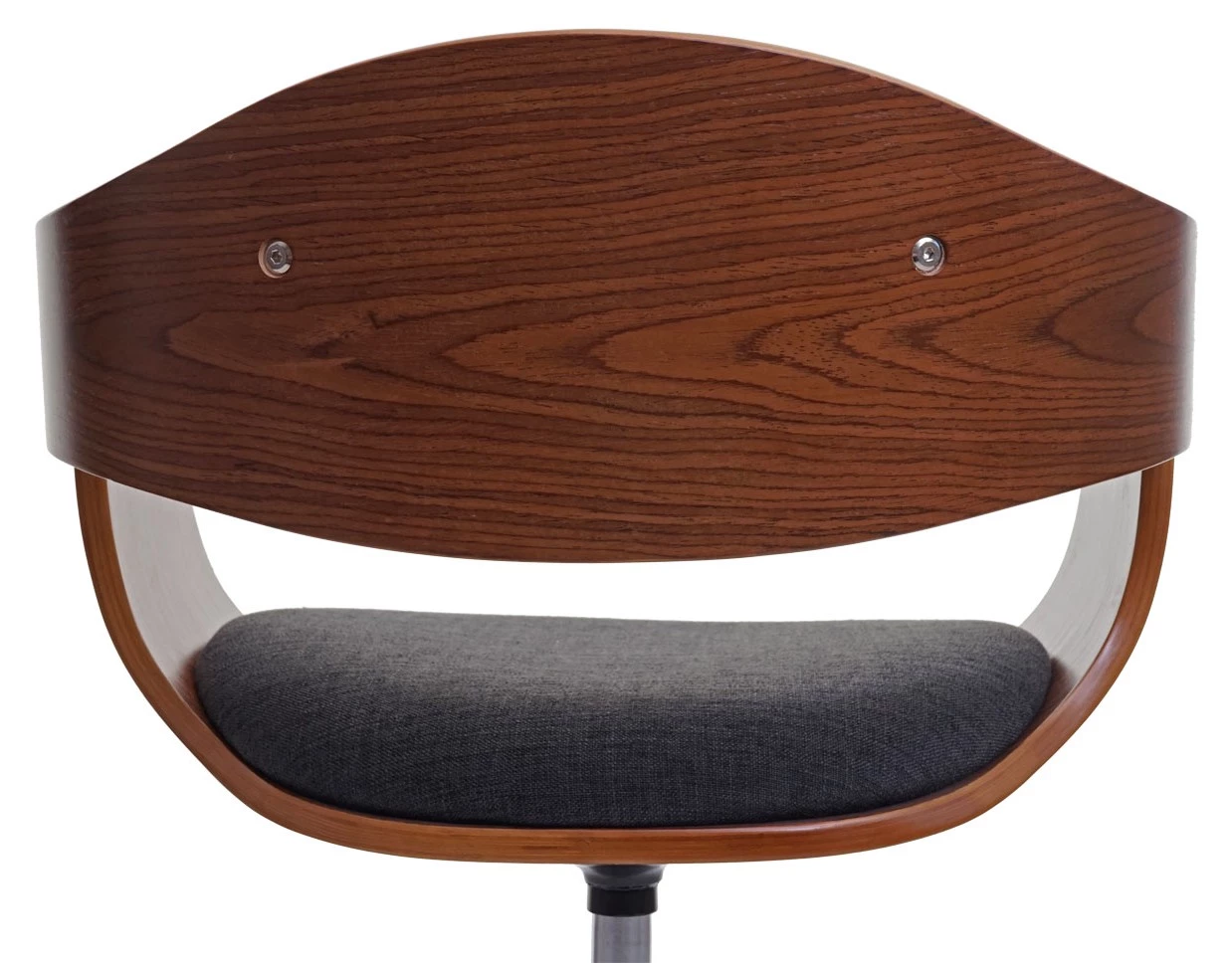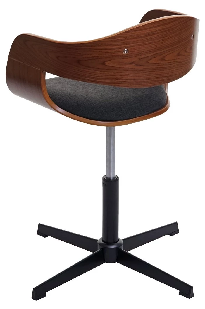 Dieser Arbeitsstuhl im ausgefallenen Look ist ein echter Blickfang. Mit seinem stilvollen Design bringt der Stuhl Gemütlichkeit in Ihre Räumlichkeiten und ist eine moderne sowie praktische Ergänzung. Besonders sticht einem die tolle Walnuss-Optik des gemaserten Bugholzes ins Auge, die perfekt mit dem schönen Bezug harmoniert. Die ergonomisch geformte Sitz- und Rückenlehne unterstützt Ihren Rücken und somit auch Ihren Sitzkomfort. Zudem ist der Designstuhl weich gepolstert, was ihn sehr bequem macht. Abgerundet wird das Gesamtbild durch das schwarze Fußkreuz, das zusätzlich Eleganz im Erscheinungsbild schafft.