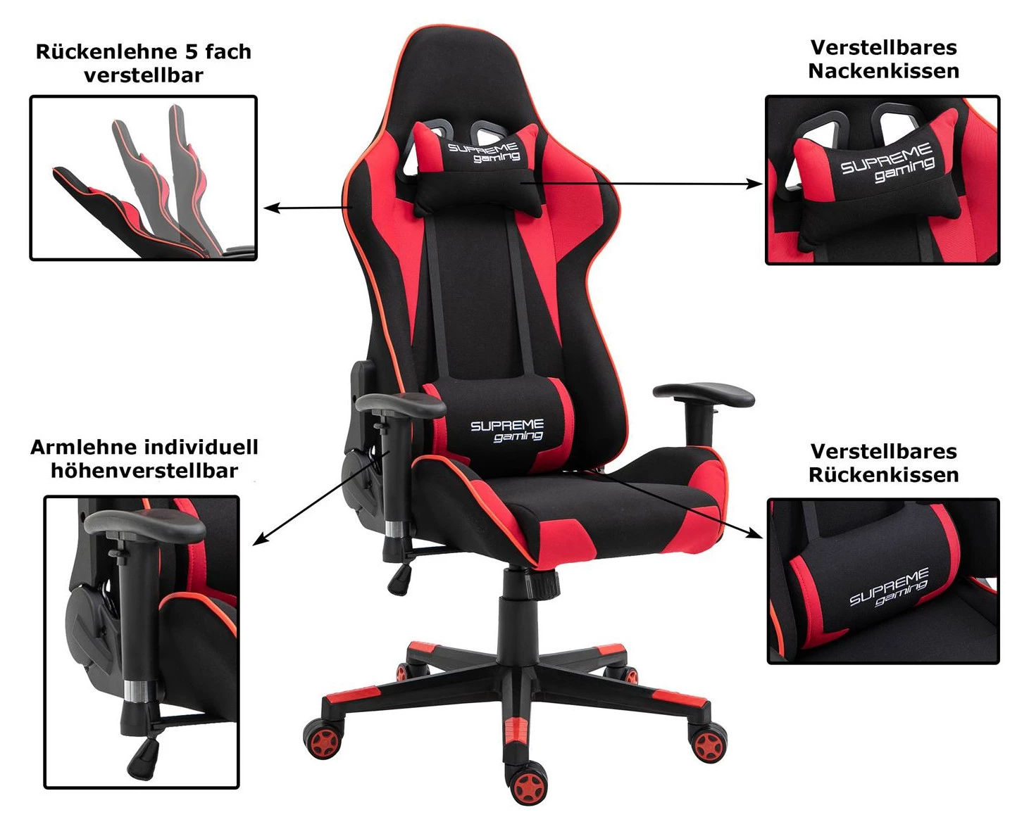 in sportlicher Racer Optik wird Sie begeistern. Die angesagte Bi-Color Optik und die bequeme und komfortable Polsterung aus Formschaumstoff lässt Sie entspannt Arbeiten oder Zocken. Die zusätzlichen Kissen im Lenden und Nackenbereich lassen sich individuell verstellen und sorgen für einen ergonomischen Sitzkomfort. Die beiden Armlehnen lassen sich ebenfalls verstellen und sorgen mit der Wippfunktion der Rückenlehne für einen überzeugenden Sitzkomfort.