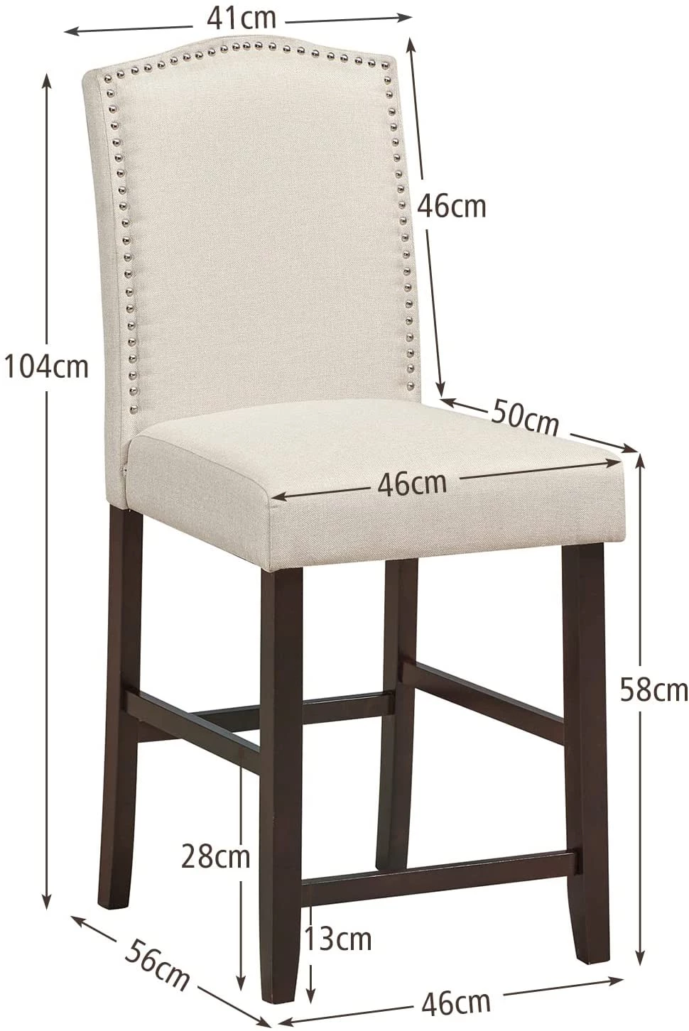 【Produktdetails】 Gesamtmaße: 46 cm x 56 cm x 104 cm (L x B x H), Sitzhöhe: 58,5 cm, Sitzmaße: 46cm x 51cm, Tragkraft: 120 kg. Die Hocker stehen jederzeit sehr stabil und sind zudem sehr tragfähig.
