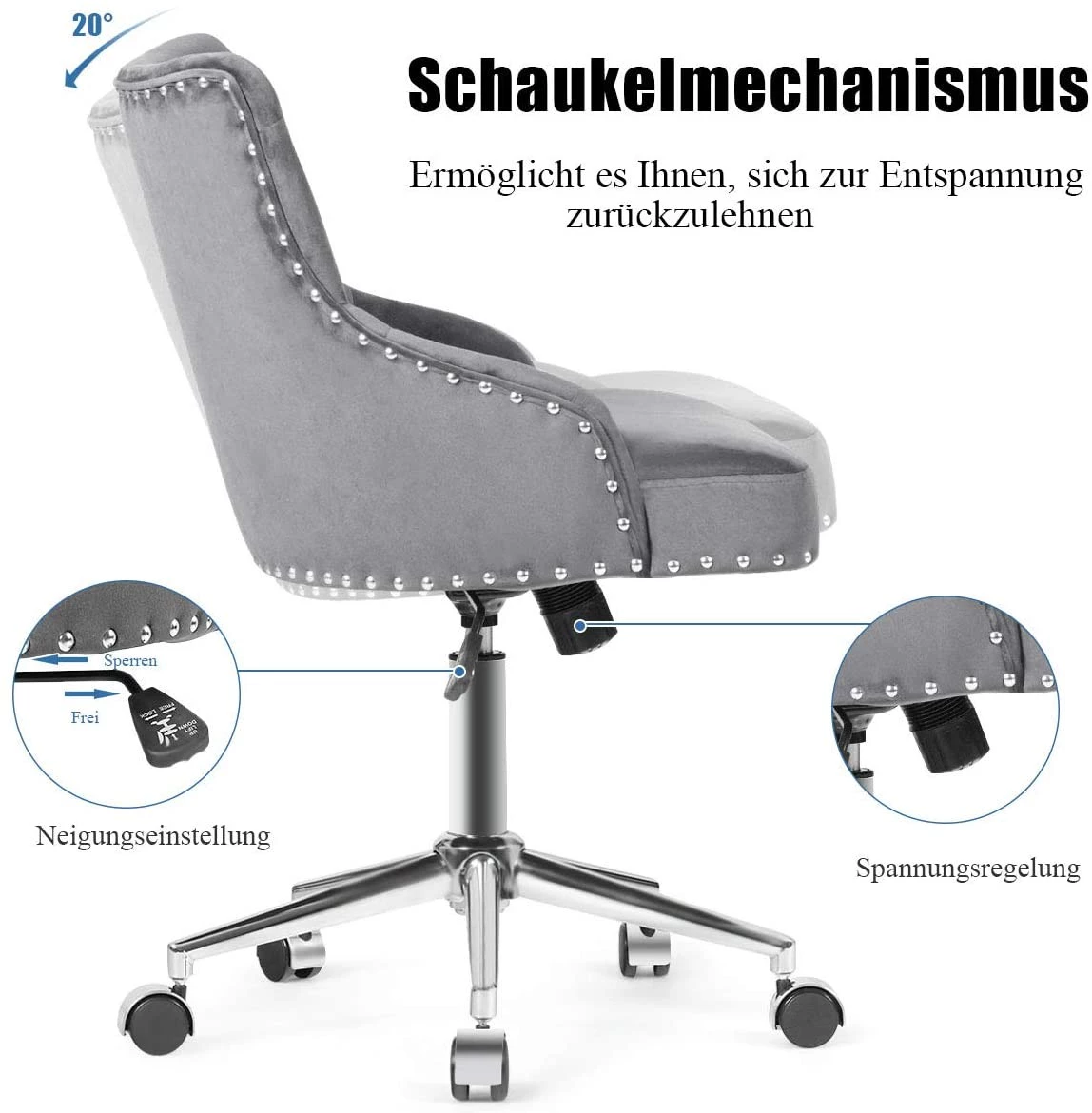 【Ergonomische Rücken- & Armlehnen】 Mit der ergonomischen, hohen Rückenlehne, passt sich unser Samt Bürosessel der Form des menschlichen Körpers an und verringert so eine Ermüdung des Rückens. Zusätzlich können die kurvigen Armlehnen, in der angemessenen Höhe, Ihre Hände effektiv entspannen und somit eine noch komfortablere Sitzerfahrung liefern.