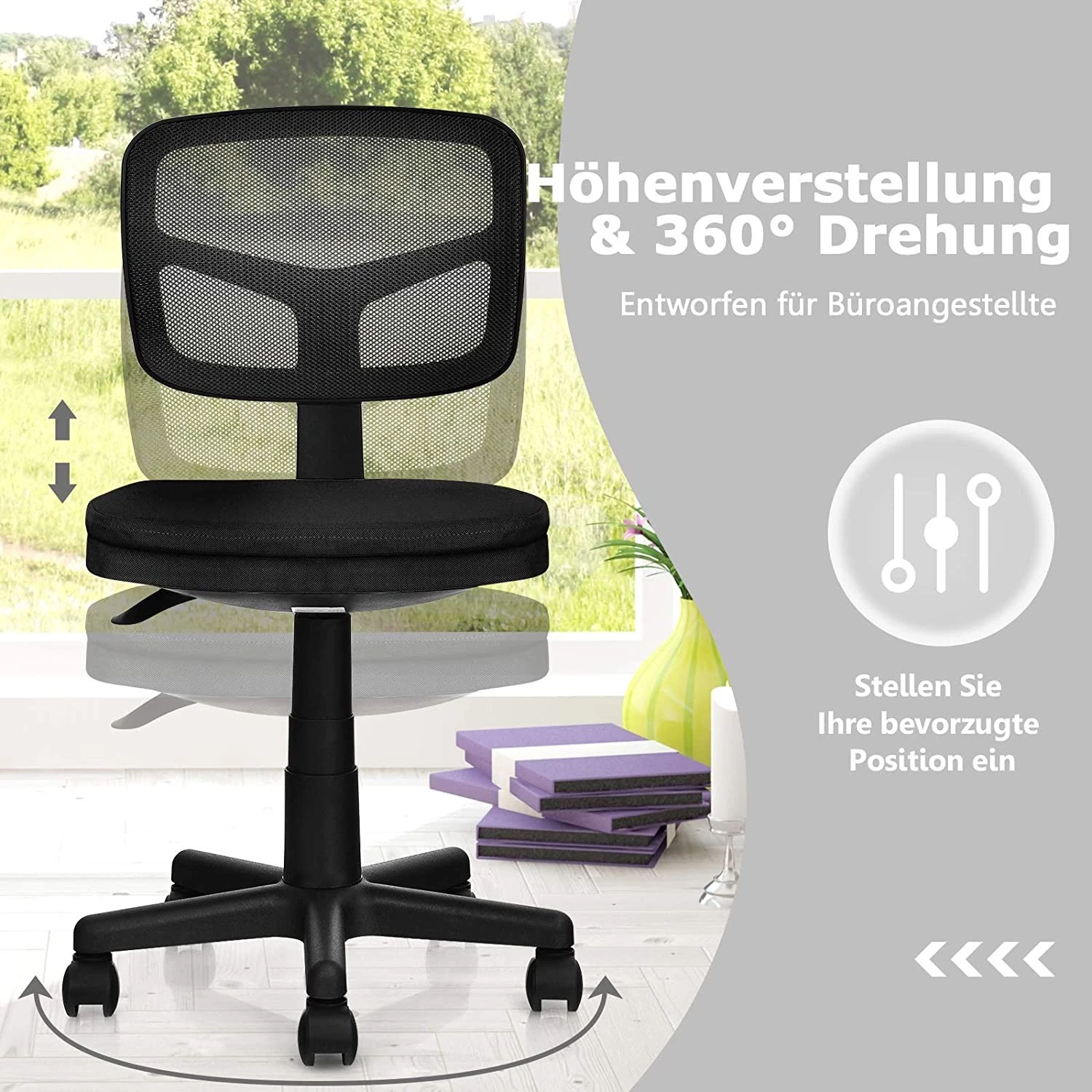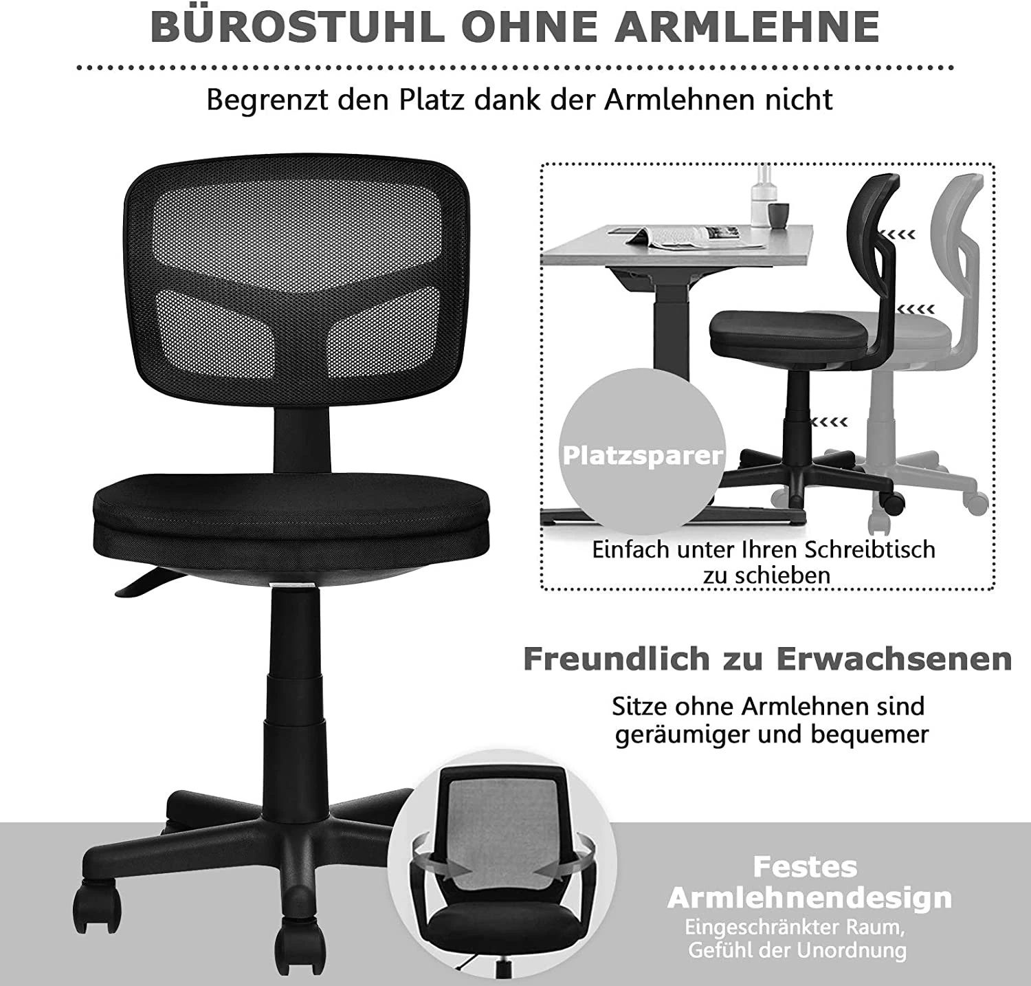 【Platzsparendes Design】Ohne Armlehnen bietet dieser Netz-Bürostuhl mehr Platz als Stühle mit Armlehnen, was besonders für große Personen ideal ist. Außerdem kann er somit bei Nichtgebrauch platzsparend unter den Tisch gerollt werden.