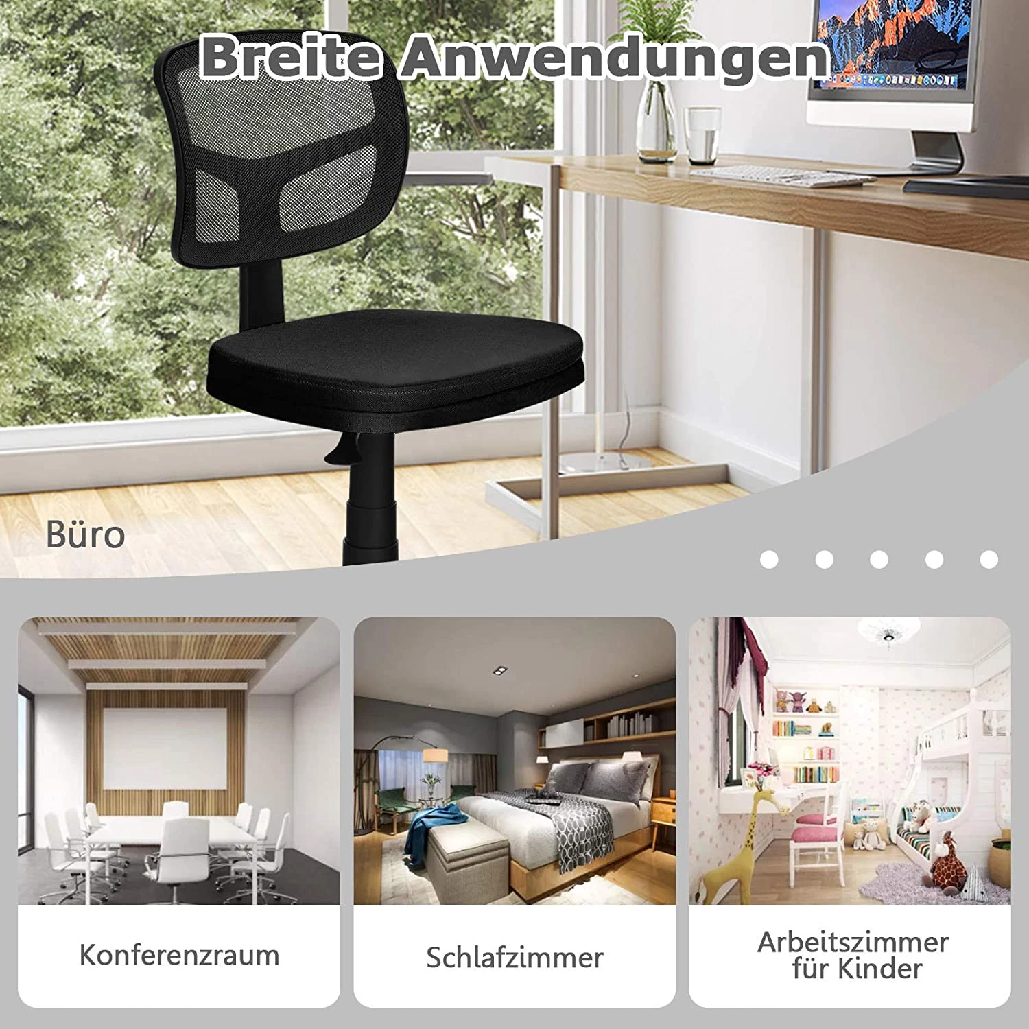 Unser Bürostuhl ist ein Must-Have-Produkt für Ihren Büroalltag. Durch die Höhenverstellbarkeit kann dieser Bürostuhl, egal ob für Kinder zum Lernen oder für Büroangestellte, auf die jeweils ideale Höhe eingestellt werden. Der Netz-Bürostuhl ohne Armlehnen spart außerdem Platz. Gefüllt mit hochelastischem Schaumstoff, bietet dieser Bürostuhl ein weiches und bequemes Sitzgefühl. Außerdem lässt sich der benutzerfreundliche, abnehmbare Kissenbezug leicht reinigen. Die leichtgängigen Rollen machen es einfach, den Stuhl jederzeit und überallhin zu bewegen. Außerdem erhöht die Fünf-Fuß-Struktur die Tragfähigkeit auf bis zu 113 kg und gewährleistet eine sichere Verwendung.
