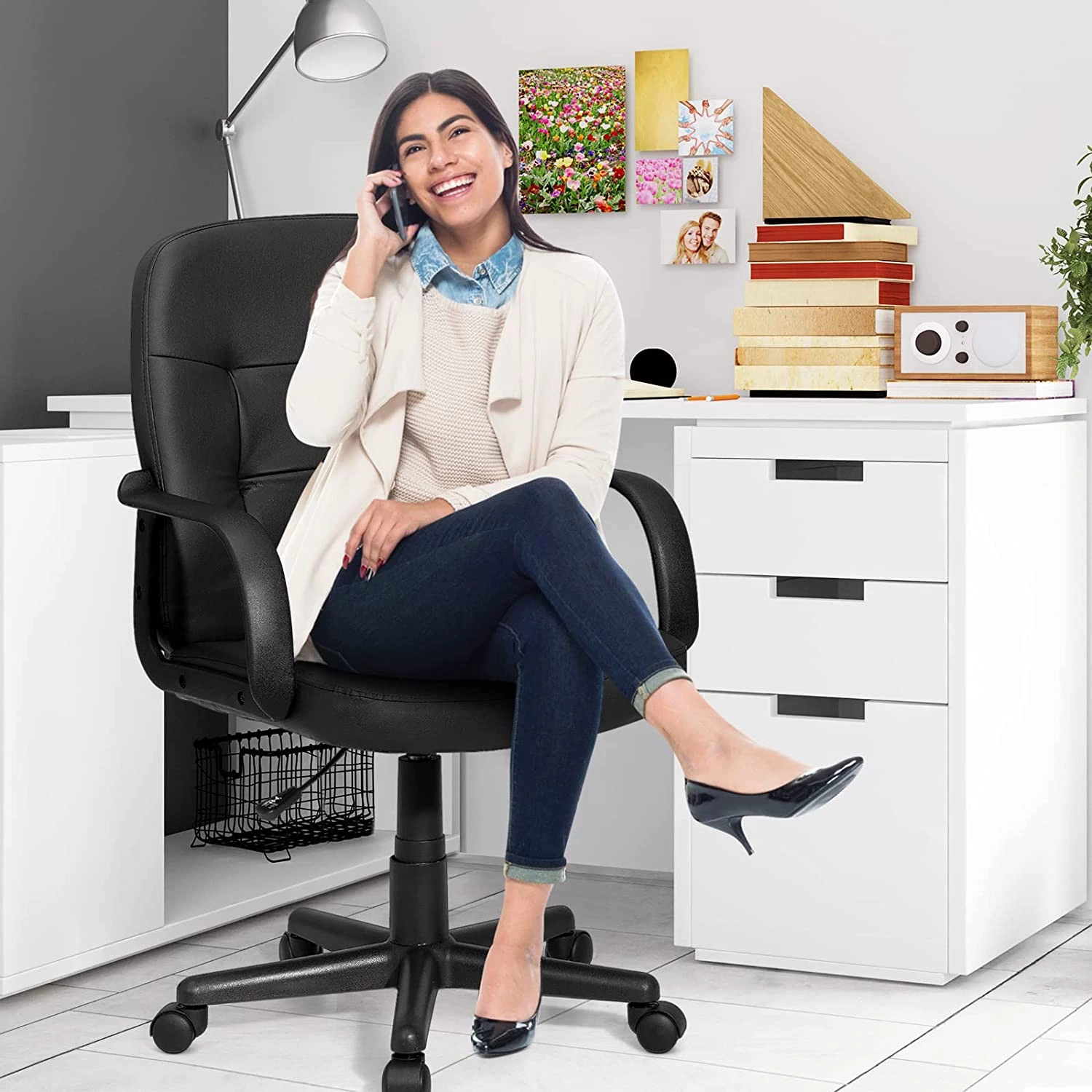 【Modernes & vielseitiges Design】 Durch das moderne und schlichte Design passt er gut zu anderen Büromöbeln. Daher eignet er sich für zuhause, Büros, usw., ist also vielseitig einsetzbar.