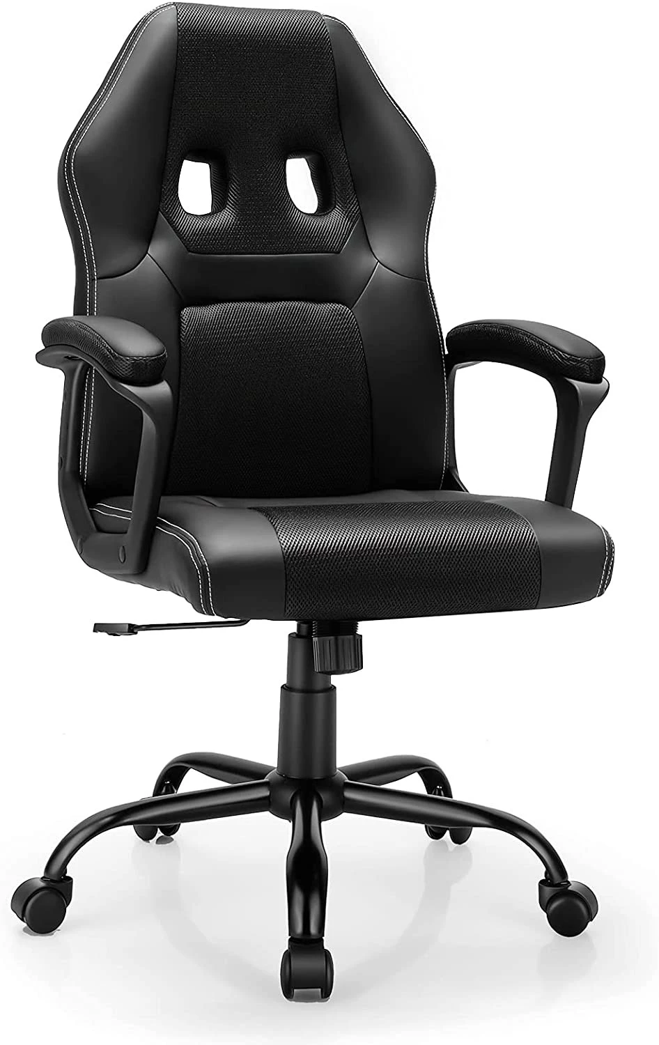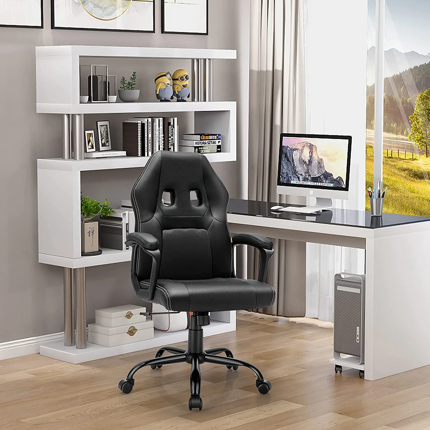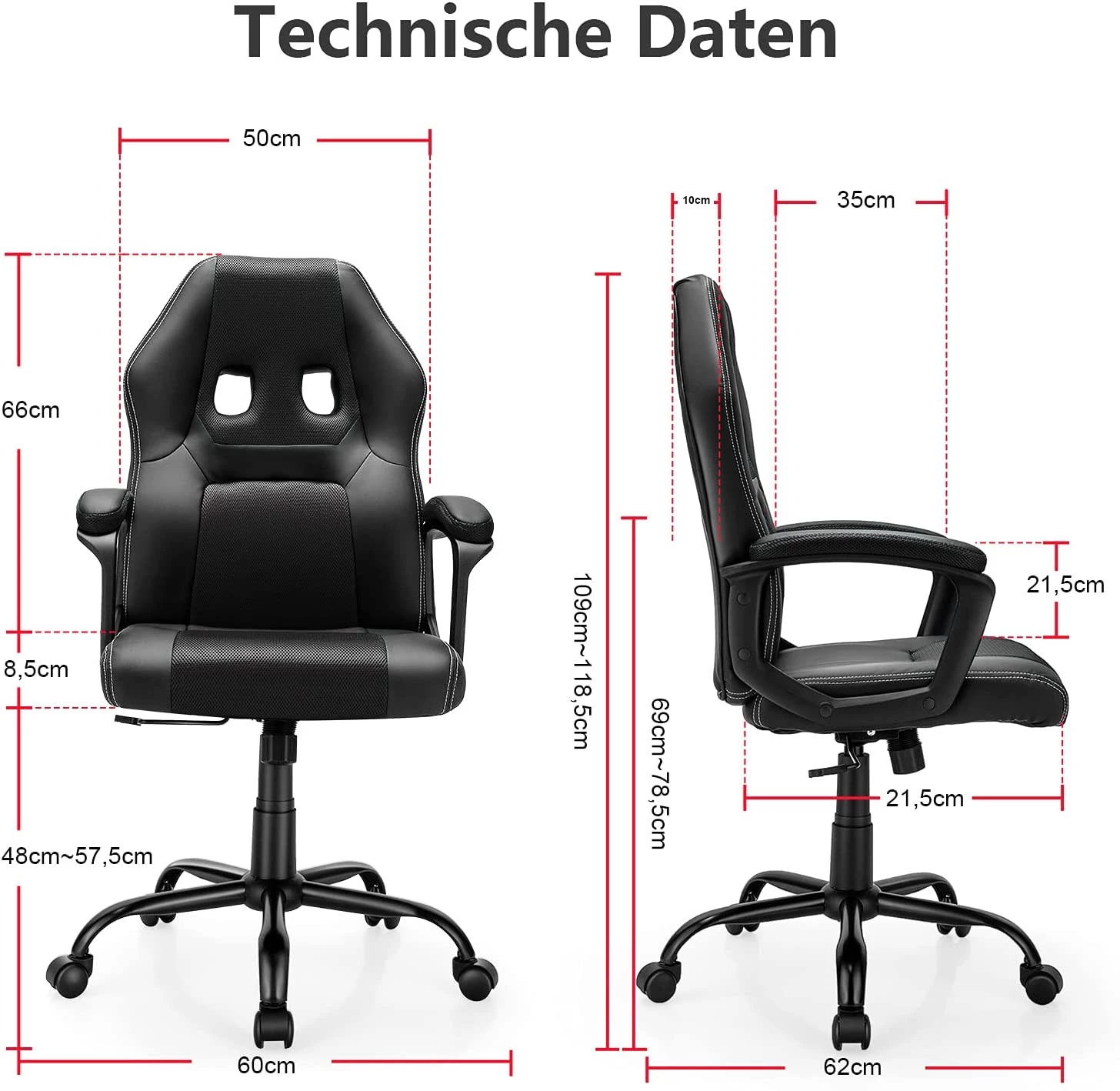 【Ergonomisches Design】Der Gamingstuhl stützt Sie durch sein ergonomisches Design auch während langen Sitzens optimal. Auch die geschwungene Rückenlehne ist sehr bequem, zudem befinden sich Armlehnen zu beiden Seiten.