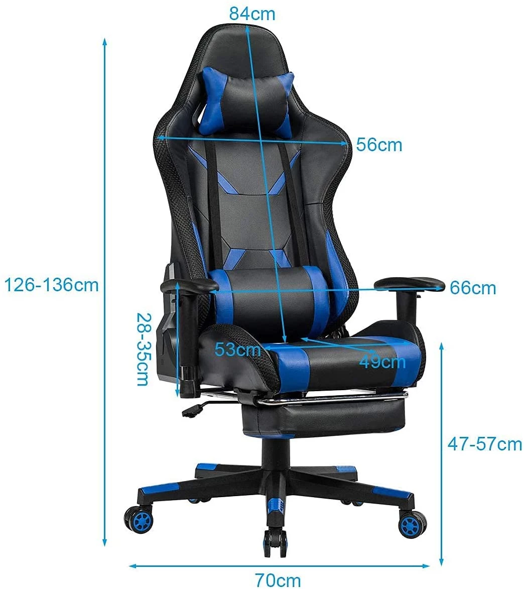 【Ausgewähltes Material】 Dank der Füllung aus hoch verdichtetem, widerstandsfähigem Schwamm, wird Ihnen dieser Gaming Stuhl eine gemütliche Sitzerfahrung bieten. Außerdem ist er mit glattem PU Leder überzogen, welches hautfreundlich, resistent gegenüber Abnutzung und einfach zu reinigen ist. Der robuste Metallrahmen sorgt für eine hervorragende Stabilität und Langlebigkeit, wobei er eine Tragkraft von 150 kg aufweist.