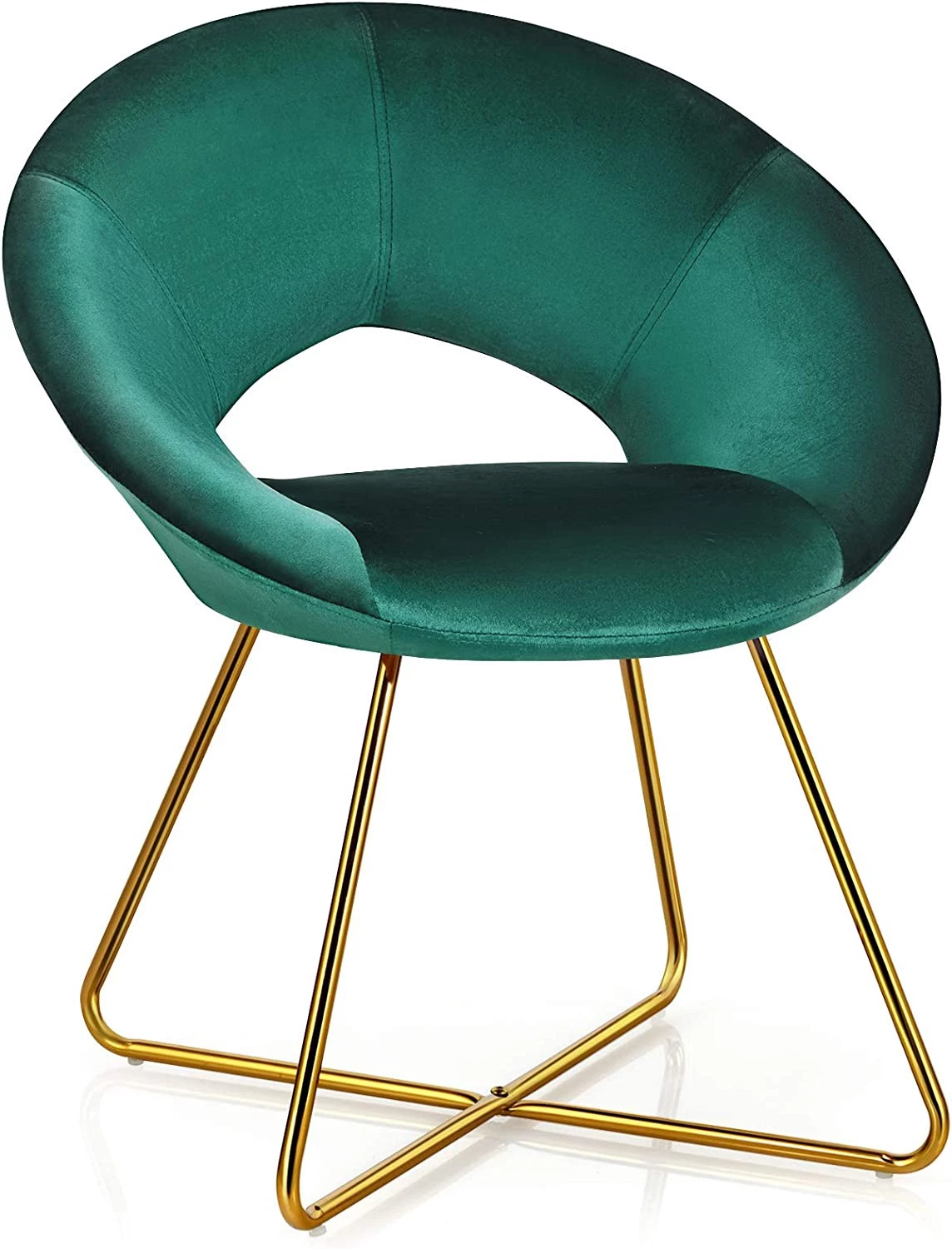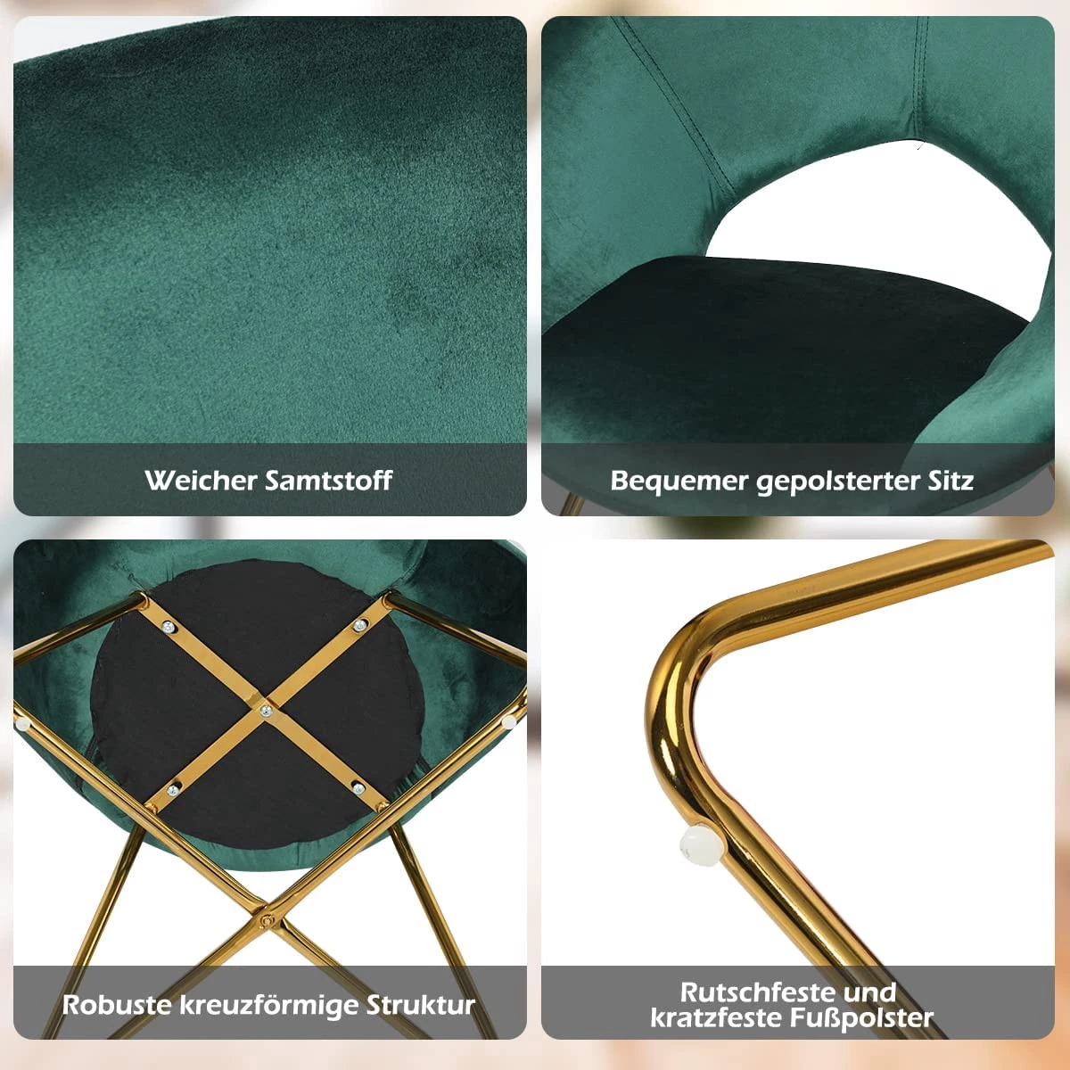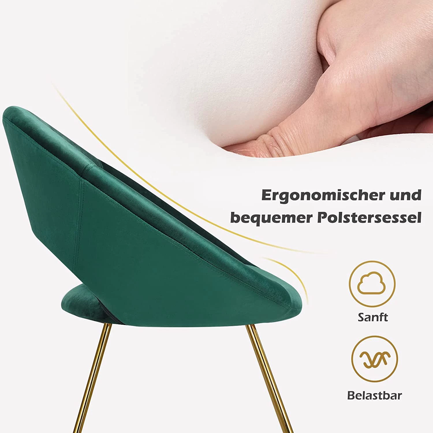 Hergestellt mit hochwertigen Eisenbeinen und einem festen kreuzförmigen Rahmen ist er stabil genug, um bis zu 120 kg zu tragen. Das ergonomische Design passt sich perfekt der Krümmung des Körpers an, um eine optimale Entspannung zu erreichen. Mit der geschwungenen Rückenlehne, den gemütlichen Armlehnen und dem dick gepolsterten Sitz werden Sie entspannt sein. Außerdem bietet Ihnen der weiche Samtbezug zusätzlichen Komfort. Darüber hinaus eignet sich unser einfache und moderneStuhl mit für Wohnzimmer, Esszimmer, Büro und mehr.