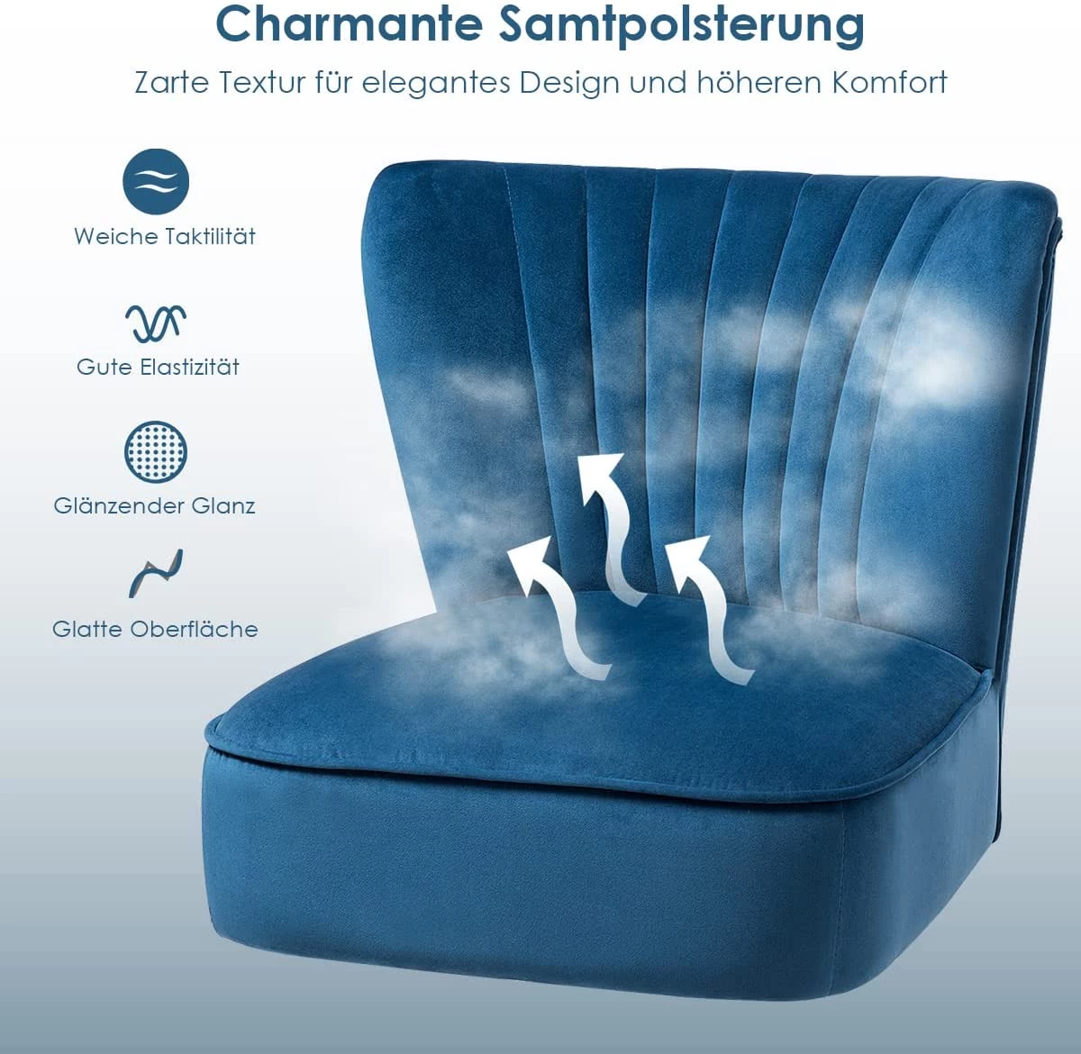 【Bequeme Polsterung】 Der Stuhl ist mit weichem und hautfreundlichem Samt bezogen und ist hierbei mit Schaumstoff gepolstert, für einen angenehmen Sitzkomfort.