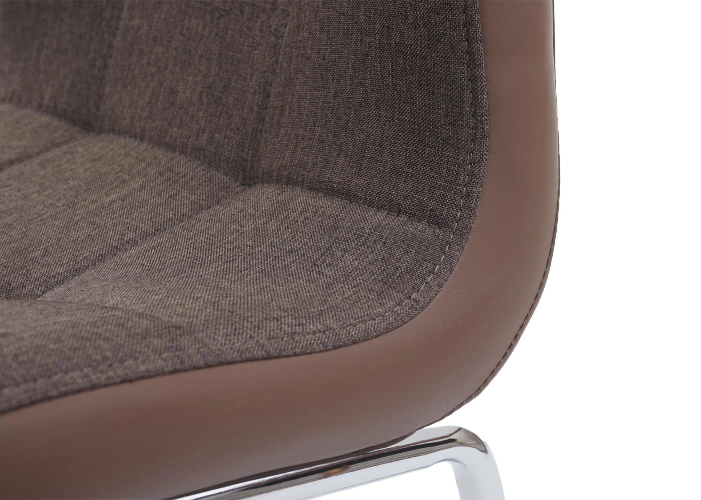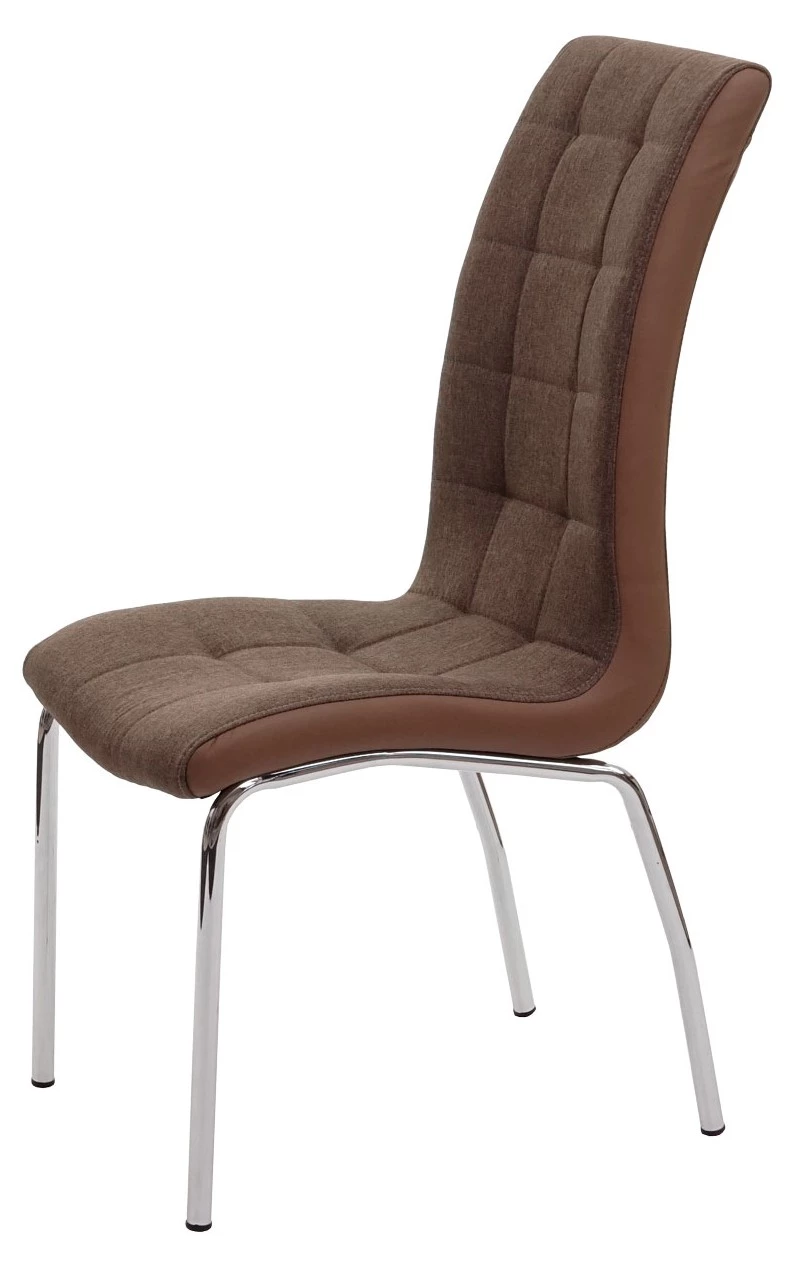 Die Materialkombination von Stoff/Textil und Kunstleder verleiht diesem Lehnstuhl ein edles Design – Blickfang und zugleich eine bequeme und stilvolle Sitzgelegenheit für den täglichen Gebrauch. Dank der verchromten Füße lässt sich der Stuhl auch mit vielerlei unterschiedlichen Tischen kombinieren.