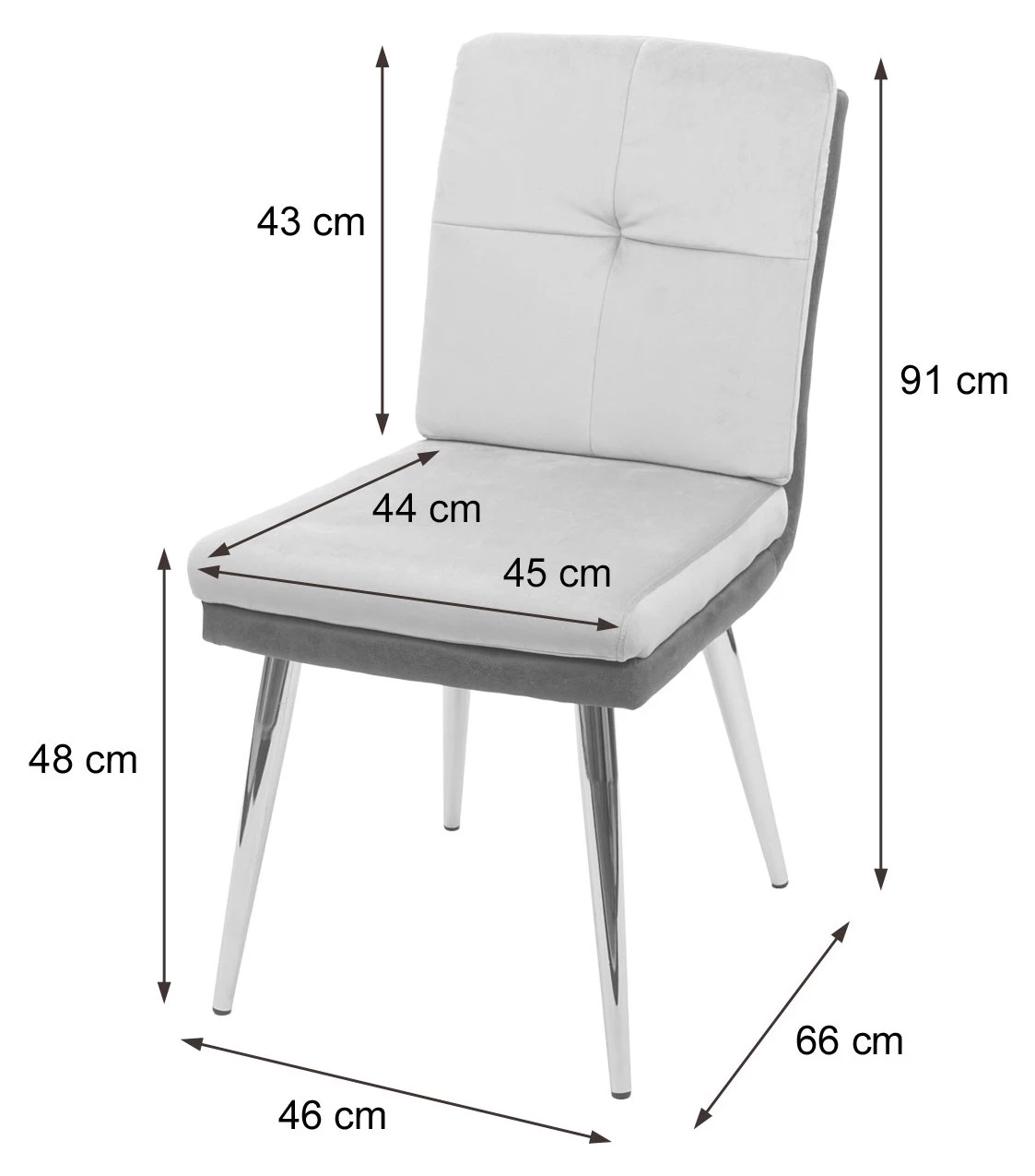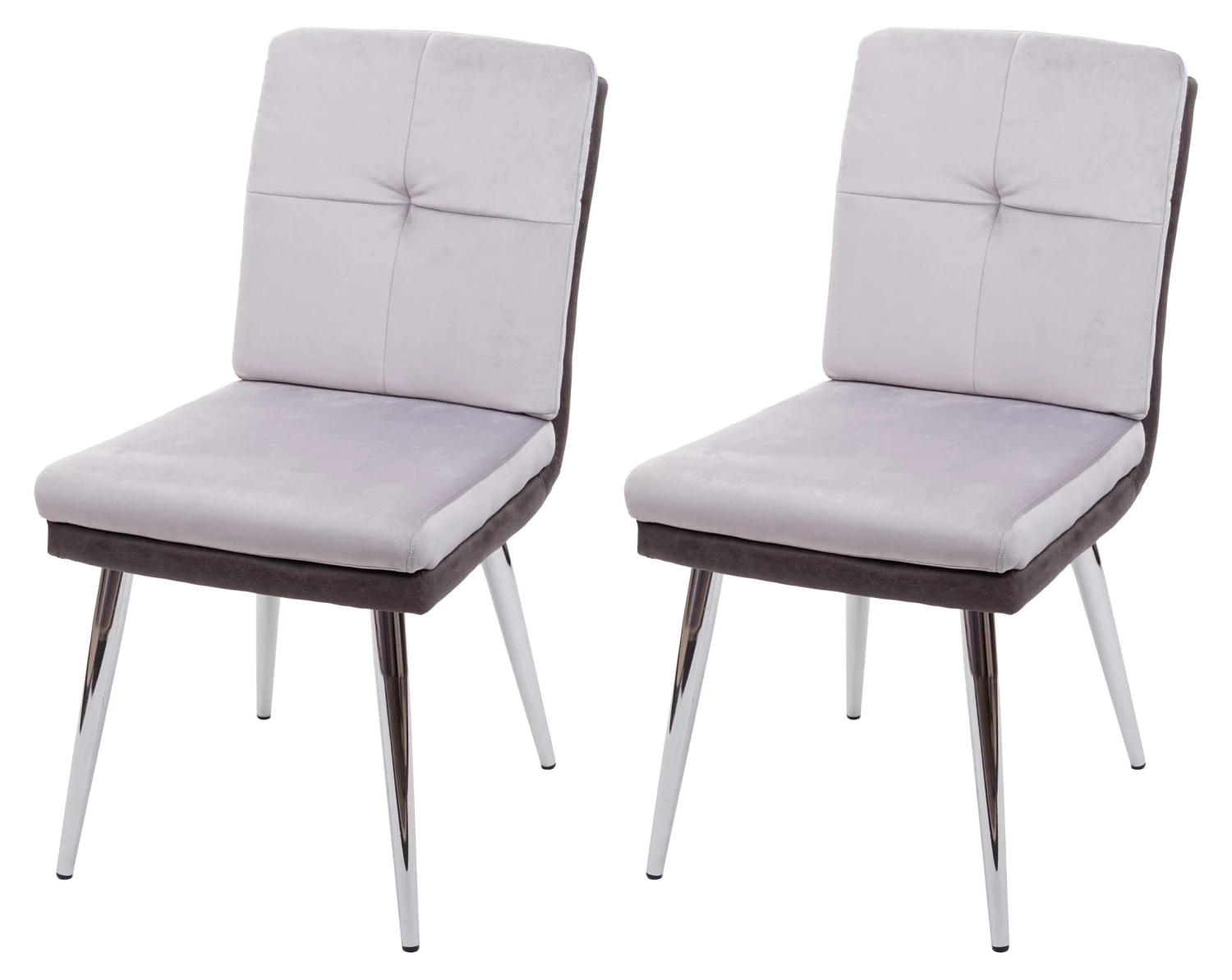 Die Materialkombination von Samt und Kunstleder verleiht diesem Stuhl ein edles Design, ebenso wie die Farbabstimmung zwischen dem hellen und dem dunklen Grau. Dieser Stuhl ist eine bequeme und stilvolle Sitzgelegenheit für den täglichen Gebrauch, durch die Kombination der beiden unterschiedlichen Materialien wird der Lehnstuhl zum Blickfang in Ihrem Esszimmer. Dank der verchromten Füße lässt sich der Stuhl auch mit vielerlei unterschiedlichen Tischen kombinieren.