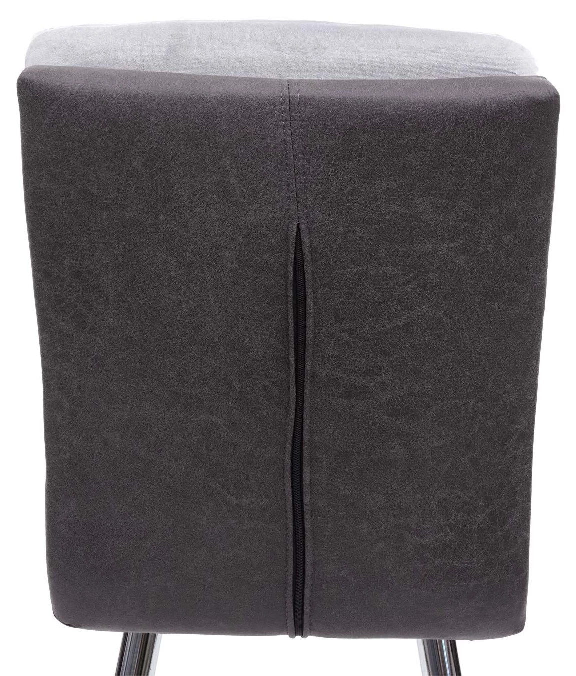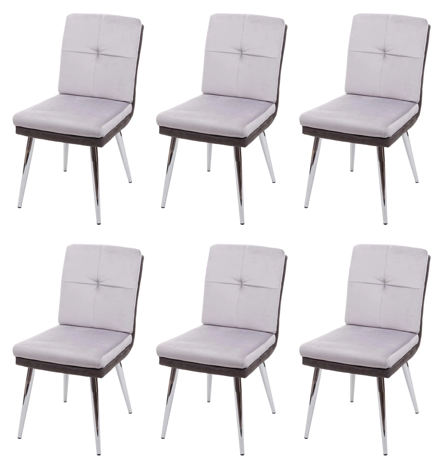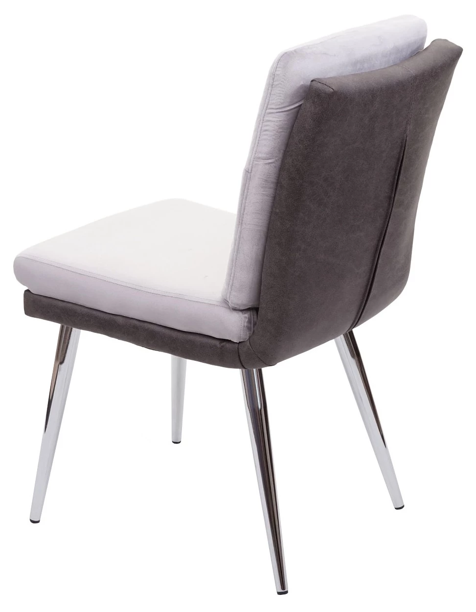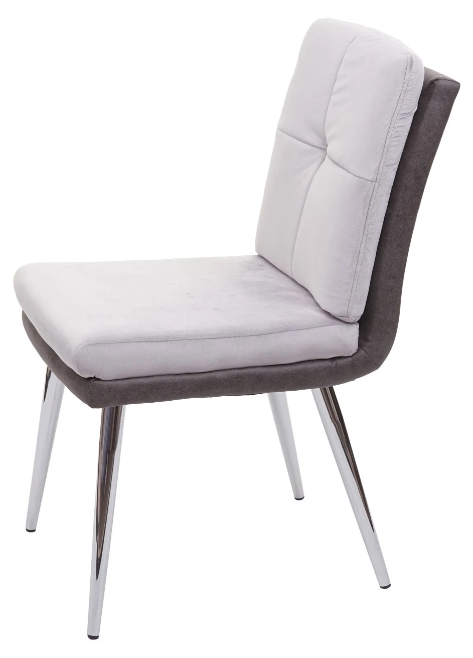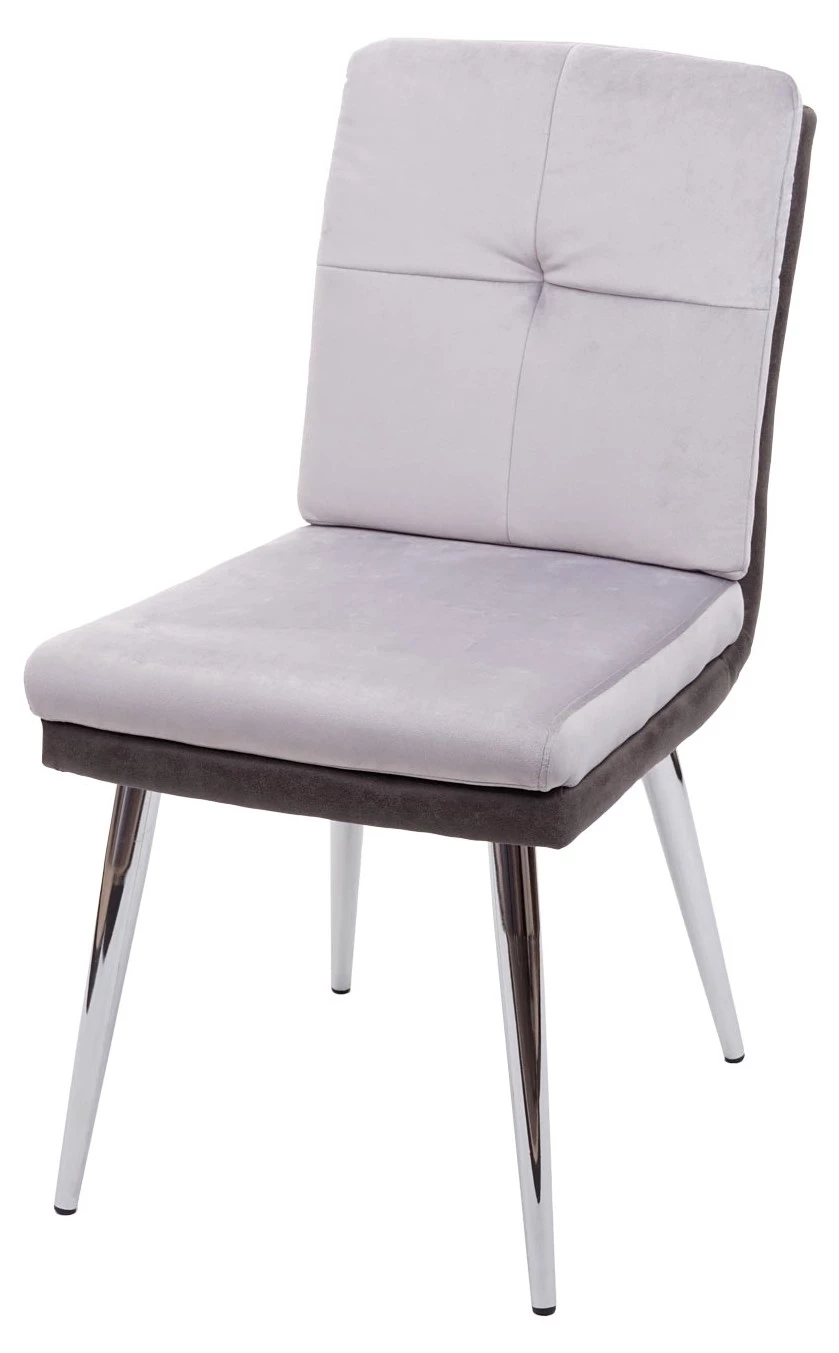 Die Materialkombination von Samt und Kunstleder verleiht diesem Stuhl ein edles Design, ebenso wie die Farbabstimmung zwischen dem hellen und dem dunklen Grau. Dieser Stuhl ist eine bequeme und stilvolle Sitzgelegenheit für den täglichen Gebrauch, durch die Kombination der beiden unterschiedlichen Materialien wird der Lehnstuhl zum Blickfang in Ihrem Esszimmer. Dank der verchromten Füße lässt sich der Stuhl auch mit vielerlei unterschiedlichen Tischen kombinieren.