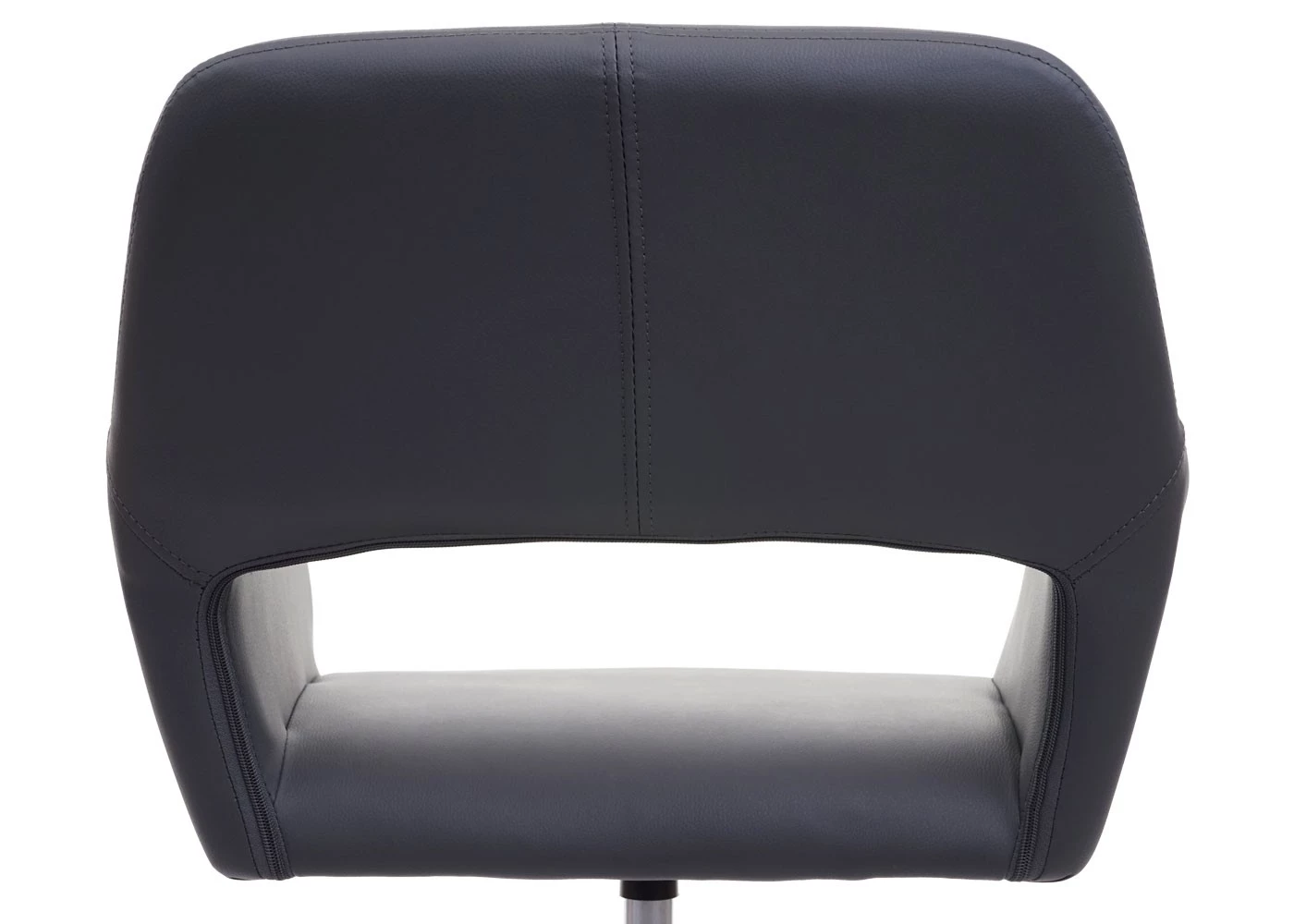 Dieser Schreibtischstuhl erfreut durch tolle Optik und gute Verarbeitung. Stabil, schick und im wirkungsvollen Retro-Stil versprüht diese Stuhlserie schlichte Eleganz. Edles Design und hoher Sitzkomfort machen den Stuhl zum Erlebnis. Das 4-Bein-Gestell ohne Rollen bietet sichere Standfestigkeit auf unterschiedlichen Bodenbeschaffenheiten und leichten Unebenheiten. Gleichzeitig rundet es das hochwertige Design perfekt ab. Unter den Füßen sind Fußbodenschoner aus Kunststoff angebracht. Diese schützen Ihren Boden vor unschönen Kratzern und sorgen zusätzlich für einen guten Stand, ohne wegzurutschen. Um 360° drehbar und höhenverstellbar durch Drehen, erfüllt dieser Arbeitsstuhl sämtliche Anforderungen und wird Ihnen lange Freude bereiten. So kann dieser Stuhl problemlos an jeden Tisch angepasst werden und lässt keine Wünsche offen. Modern, praktisch und bequem, dieser Bürostuhl wird all Ihren Anforderungen spielend leicht gerecht werden.