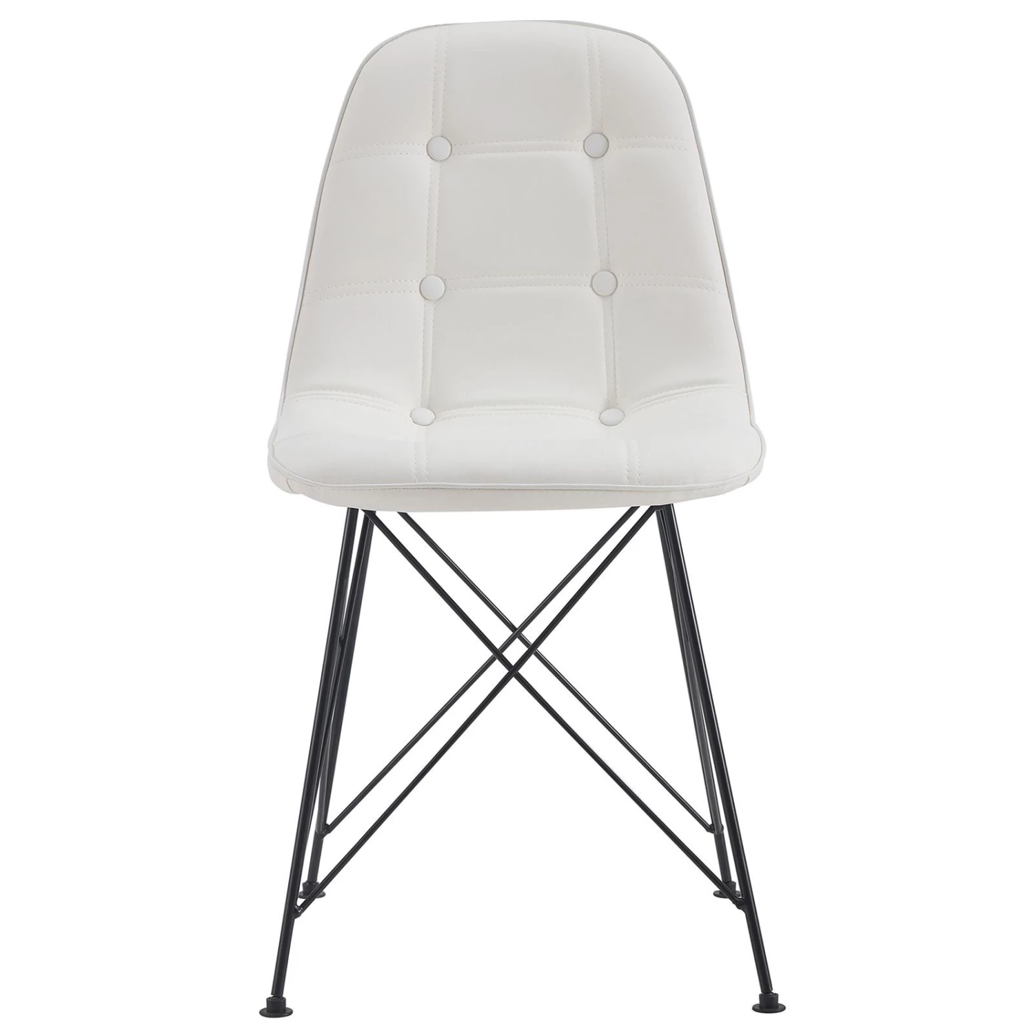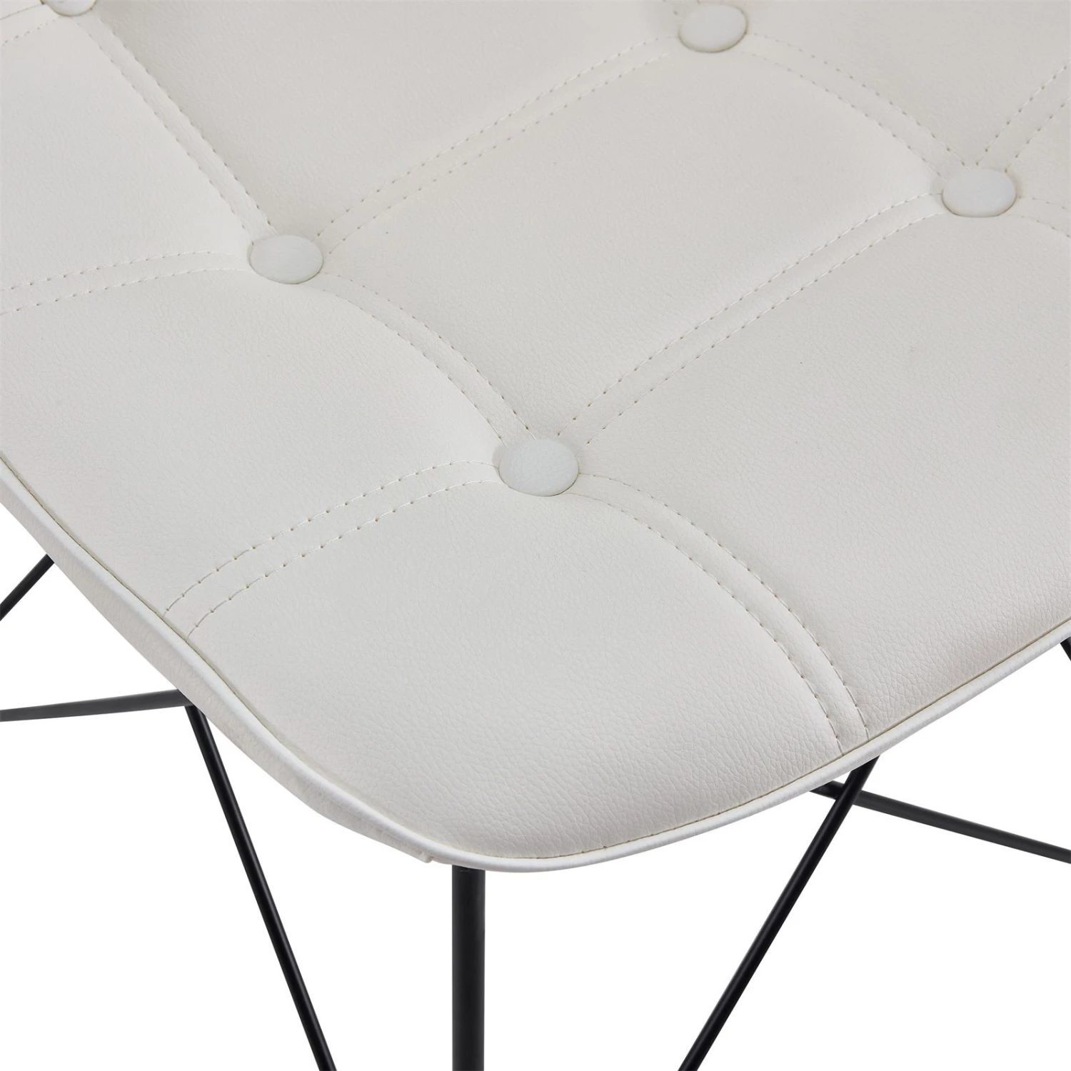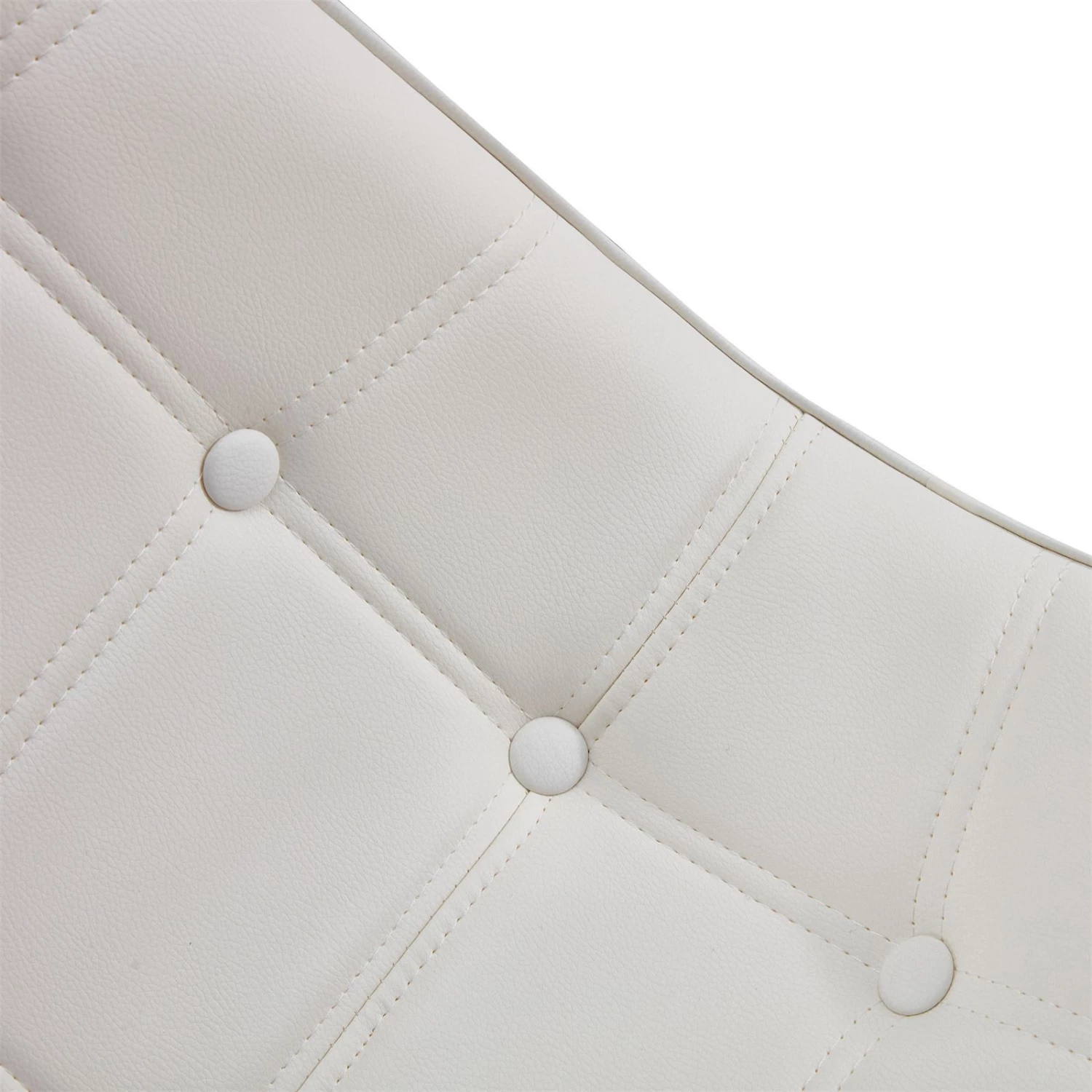 - Die Sitzschale ist bequem gepolstert und mit einem Lederimitat in der Farbe weiß überzogen.