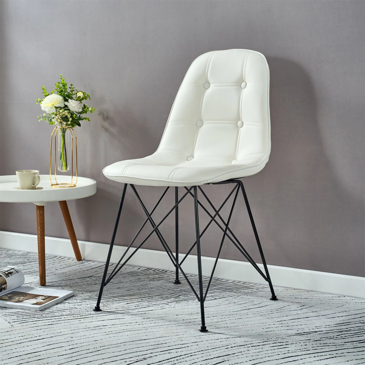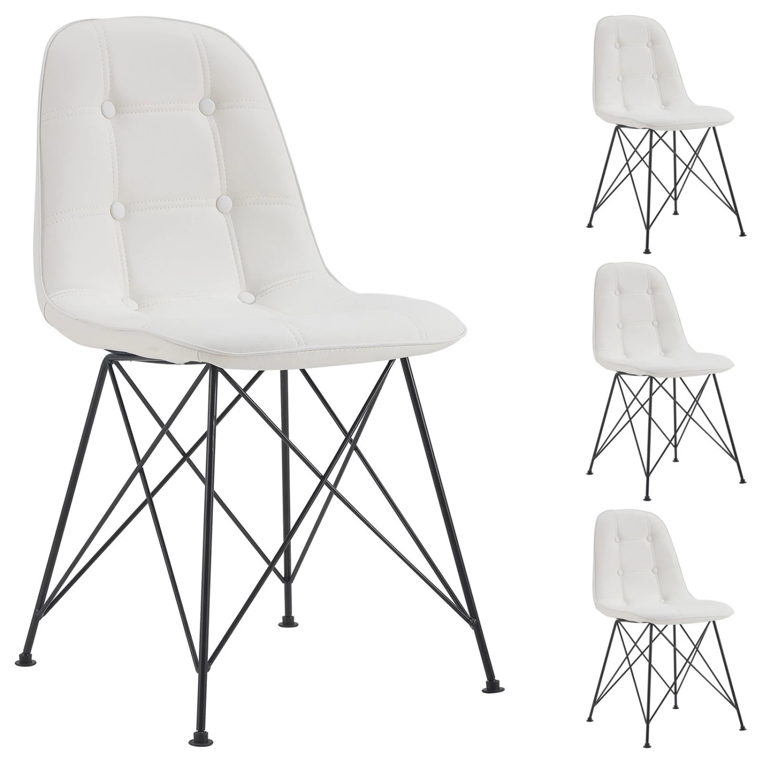ist die perfekte Sitzgelegenheit. Mit seinem charmantes Retro-Design sowie den Ziernähten am Kunstlederbezug wird dieser Polsterstuhl zum Hingucker in jedem Essbereich. Dieser schöne Küchenstuhl ist im 4er Set erhältlich. Erleben Sie maximalen Sitzkomfort dank der beuqeum gepolsterten Sitz- und Rückenfläche. Das robuste Metallgestell wird mit zusätzlichen Verstrebungen verstärkt und ist in schwarz lackiert.