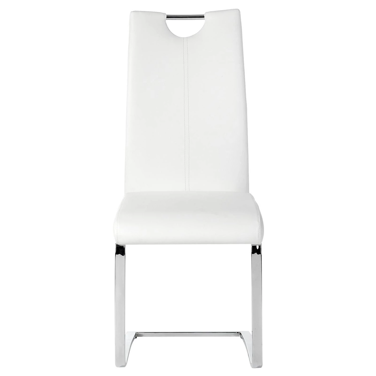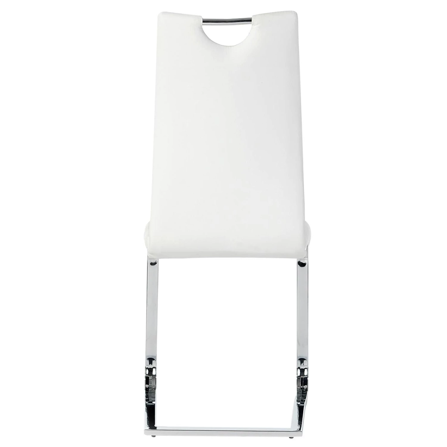ist ein stylischer Stuhl für Küche und Essbereich. Dank dem strapazierfähigen Bezug aus Lederimitat werden Sie lange freude an diesem Schwingstuhl haben. Die gepolsterte Sitz- und Rückenfläche bietet ein bequemes Sitzgefühl. Das verchromte Metallgestell mit dem trendigen Lederimitat lassen den Essbereich stilvoll wirken.