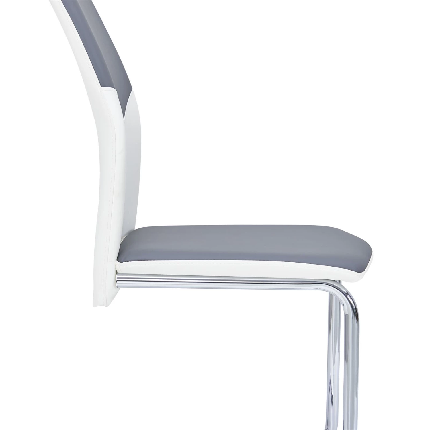 - Lieferumfang: LEONA Schwingstuhl PU grau/weiß chrom 4er Set