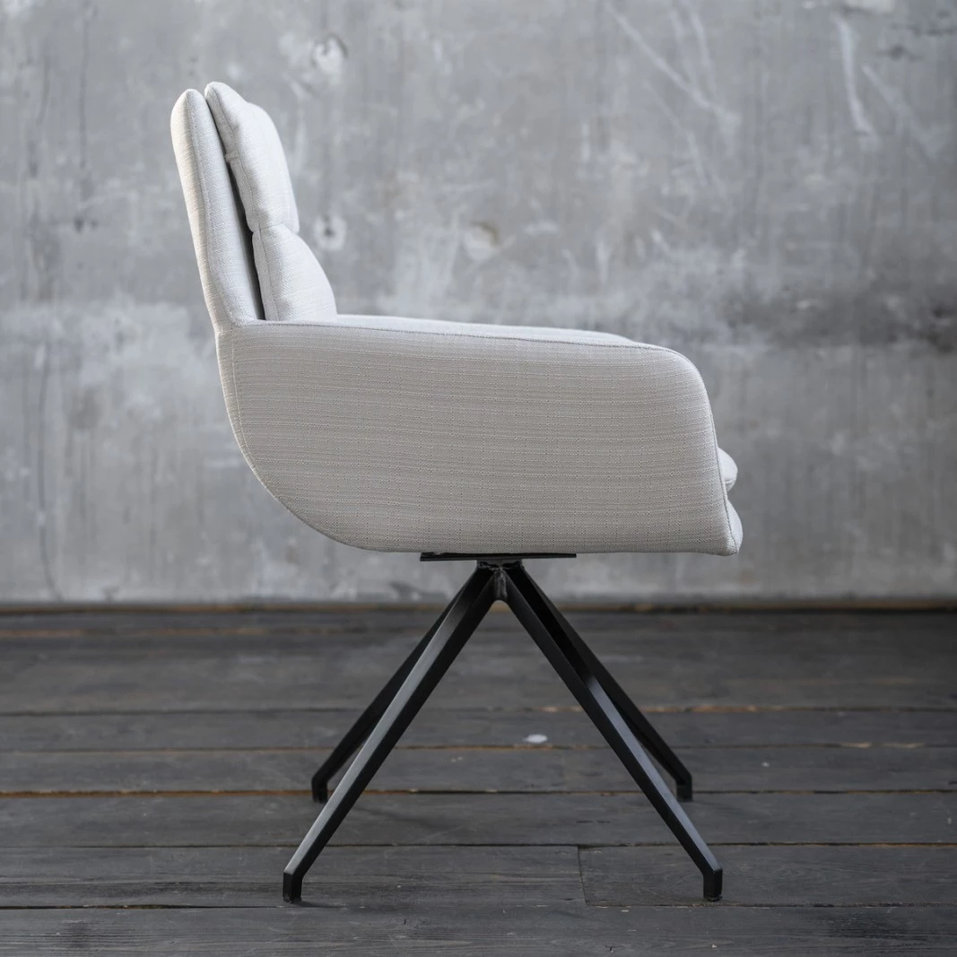 Das Besondere an dem Stuhl VINCE liegt darin, dass das Untergestell über eine Drehfunktion verfügt.