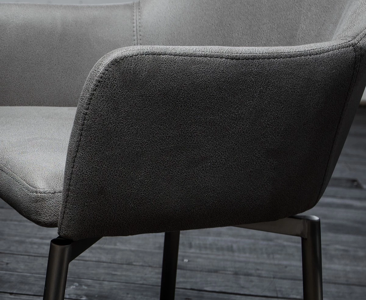 Der Bezug in Microfaser ist pflegeleicht und Verschmutzungen können mit einem feuchten Tuch einfach entfernt werden. Durch die Wahl des Bezuges eignet sich der Stuhl mit Armlehnen für jeden Einsatzbereich; ganz gleich ob im Esszimmer, im Konferenzraum oder im Wartebereich der Stuhl Loui macht überall eine gute Figur. Die Sitzschale des Stuhls ist drehbar.