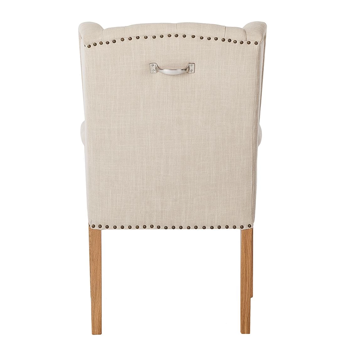 Der stilvolle Esszimmerstuhl Madison von Maison Belfort überzeugt im unverkennbaren Chesterfield-Stil. Vor allem die Knopfsteppung, die ein schönes Rautenmuster im beigefarbenen Webstoff hervorruft, kennzeichnet den zeitlosen Stil. Die Nietenapplikationen verleihen dem bequemen Stuhl das gewisse Etwas.