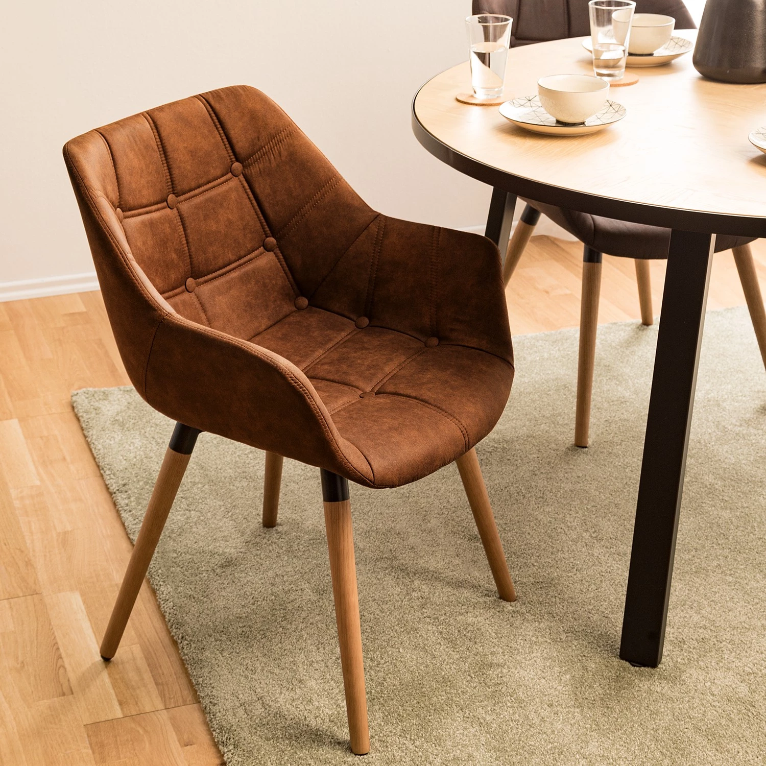 - Beine: Massivholz Eiche, geölt