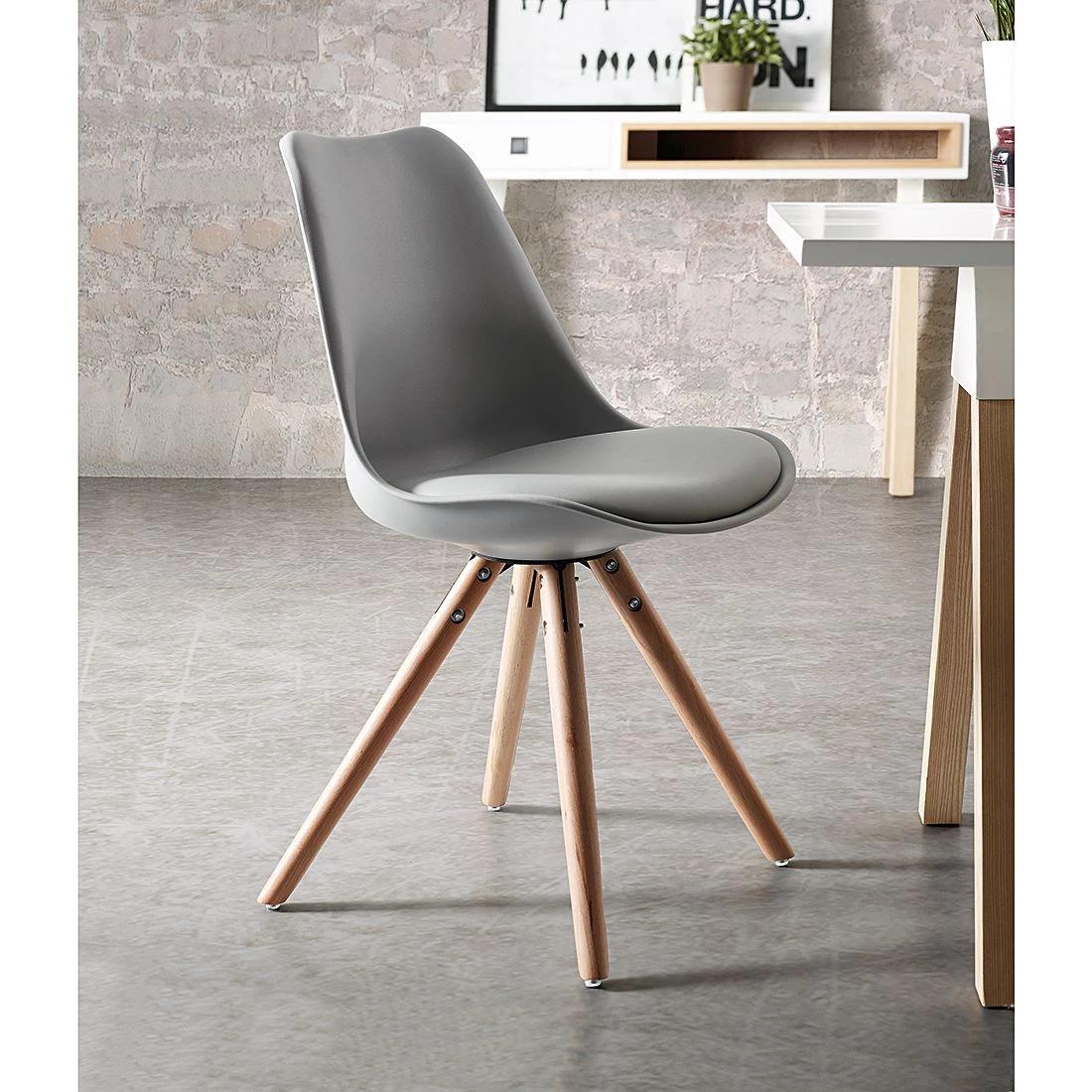 Der Polsterstuhl Thirza im praktischen 4er Set präsentiert sich im extravaganten Design und ist in jedem modern eingerichteten Essbereich ein Blickfang. Die schön geschwungene Sitzschale ist aus hochwertigem Kunststoff gefertigt und mit attraktivem Kunstleder bezogen. Vier schräg gestellte Beine aus massiver Buche geben dem 4er Set des Polsterstuhls Thirza ein skandinavisches Aussehen und sorgen für ein natürliches und freundliches Ambiente. Dank des formschönen Designs und der klaren Optik lässt sich das Sitzmöbel in verschiedene Raumkonzepte problemlos einfügen.