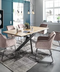 Mørteens Polsterstuhl Aledas lV – Samt / Gummibaum massiv – Altrosa – Beige – 2er Set