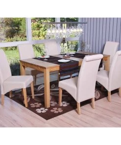 HWC Esszimmerstuhl Orlando II (6er Set) – Beige – Kunstleder