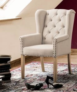 Maison Belfort Polsterstuhl Ellerby I (2er-Set) – Webstoff / Buche massiv – Buche – Beige