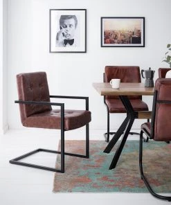 Ars manufacti Armlehnenstuhl Bex – Kunstleder / Metall – Braun / Schwarz