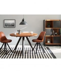 Tenzo Esszimmerstuhl Gina VII (2er-Set) – Kunstleder / Eiche massiv – Cognac / Schwarz