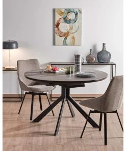 Mørteens Polsterstuhl Aledas lV – Samt / Gummibaum massiv – Dunkelgrau – Schwarz – 4er Set