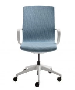 Mayer Sitzmöbel Armlehnenstuhl myPRIMO II – Flachgewebe / Kunststoff – Chrom – Weiß / Jeansblau