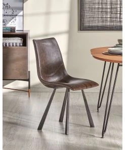 Fredriks Esszimmerstuhl Tryon (4er-Set) – Kunstleder / Stahl – Vintage Dunkelbraun / Dunkelbraun