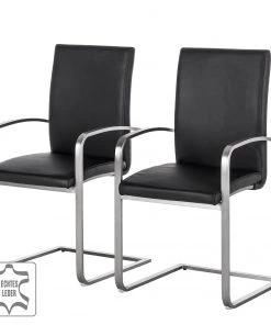 Fredriks Freischwinger Augusta I (2er-Set) – Echtleder Aude: Schwarz – Mit Armlehnen