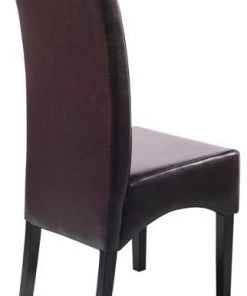HWC Esszimmerstuhl Littau Kunstleder 2er-Set – Hochglanz Weiß – Braun – Kunstleder – Holz teilmassiv