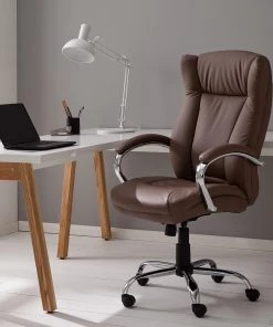 Home24office Chefsessel Director II – Kunstleder / Kunststoff – Cappuccino / Silber