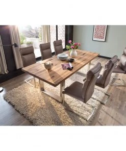 Loftscape Freischwinger Sarena (2er-Set) – Microfaser / Edelstahl – Silber – Antikbraun