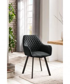 Loftscape Armlehnenstuhl Moala I (2er-Set) – Microfaser / Stahl – Vintage Braun / Schwarz