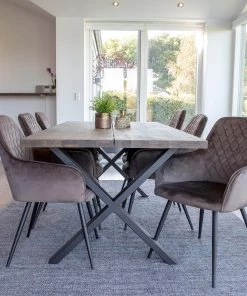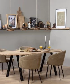 Loftscape Armlehnenstuhl Neuville (2er-Set) – Microfaser & Strukturstoff / Stahl – Olivgrün