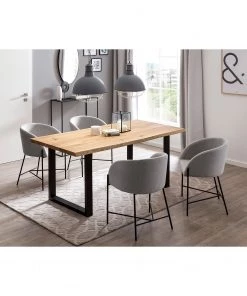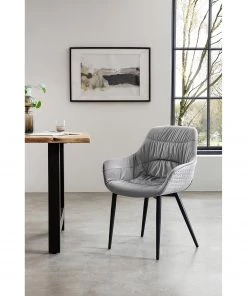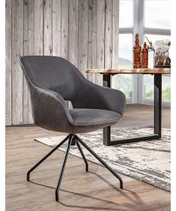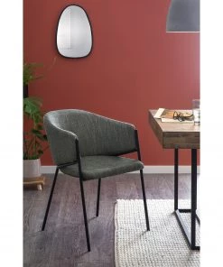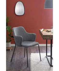 Loftscape Armlehnenstuhl Savega (2er-Set) – Webstoff / Edelstahl – Anthrazit – Dunkelgrau