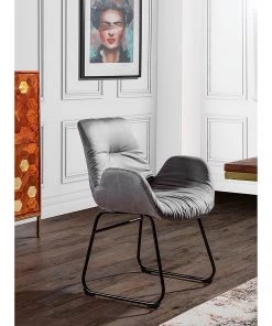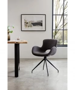 Loftscape Armlehnenstuhl Tursin (2er-Set) – Strukturstoff / Stahl – Latte Macchiato – Schwarz