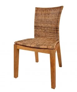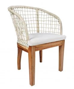 Ars Natura Armlehnenstuhl Le Puy – Webstoff / Rattan & Suar massiv – Weiß / Rattan Creme & Suar