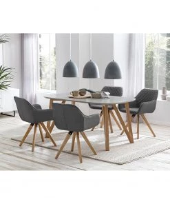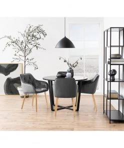 Loftscape Armlehnenstuhl Kampen II (2er-Set) – Webstoff / Eiche massiv – Hellgrau / Eiche