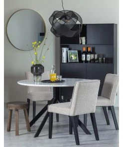 Mørteens Armlehnenstuhl Buggio – Webstoff / Gummibaum massiv – Webstoff Cors: Granit – 2er Set