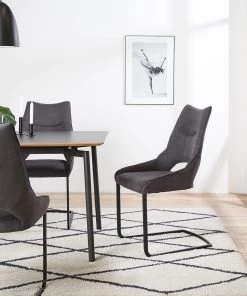 Loftscape Esszimmerstuhl Gingin (2er-Set) – Microfaser / Metall – Anthrazit – Lichtgrau