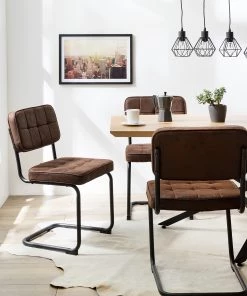 Loftscape Freischwinger Bovina (2er-Set) – Microfaser / Metall – Schwarz – Vintage Schwarz