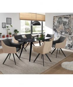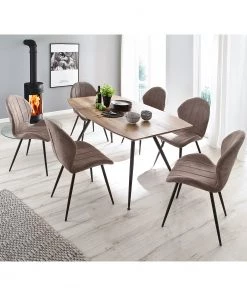 Loftscape Esszimmerstuhl Liena – Microfaser / Metall – Schwarz – Vintage Sand – 4er Set