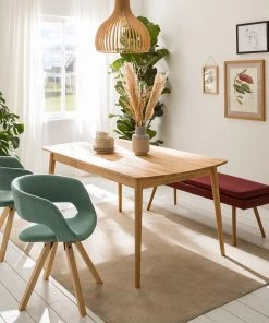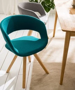 Mørteens Armlehnenstuhl Buggio – Webstoff / Gummibaum massiv – Webstoff Cors: Petrol – 2er Set