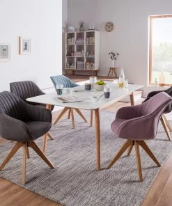 Mørteens Armlehnenstuhl Buggio – Webstoff / Gummibaum massiv – Webstoff Cors: Granit – 2er Set